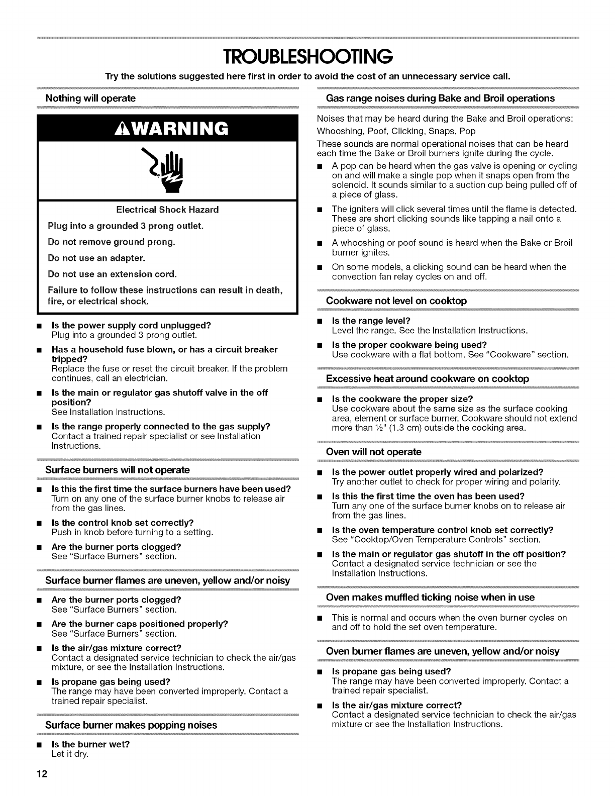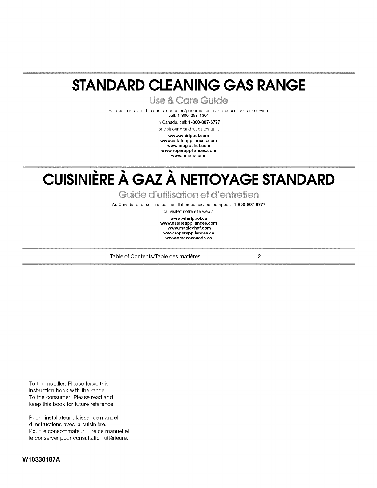 Amana AGR3311WDW1 1103626L User Manual 30 GAS FREESTANDING RANGE Manuals And Guides