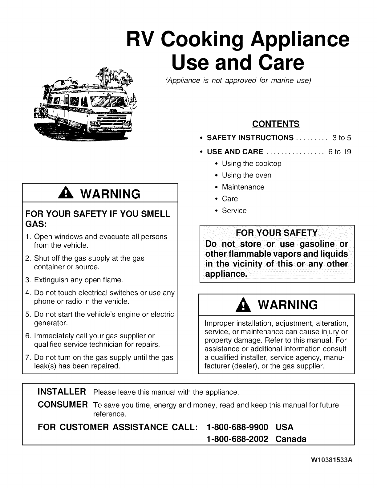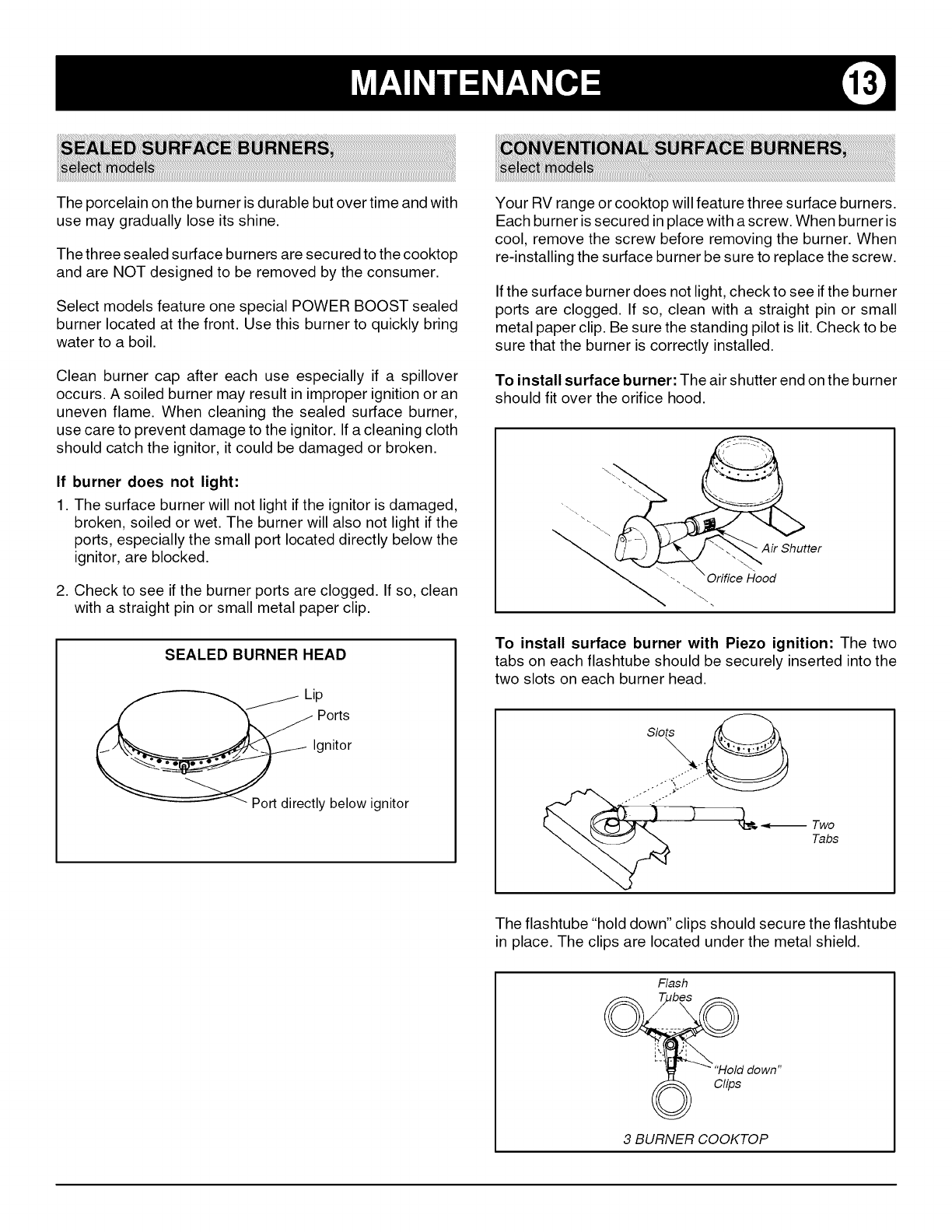 Amana ALY2220BDB00 1103625L User Manual 22 GAS RV RANGE SEALED BURNERS Manuals And Guides
