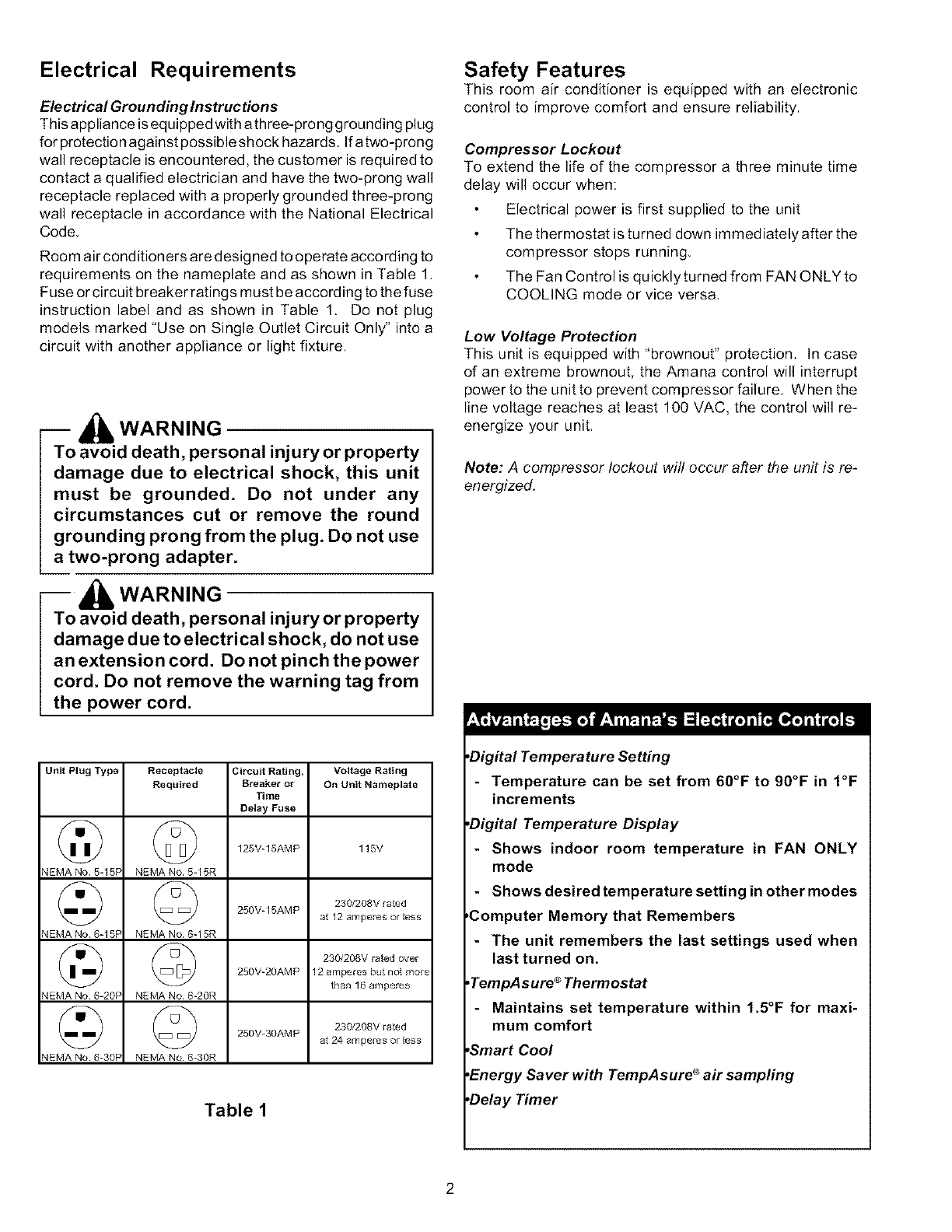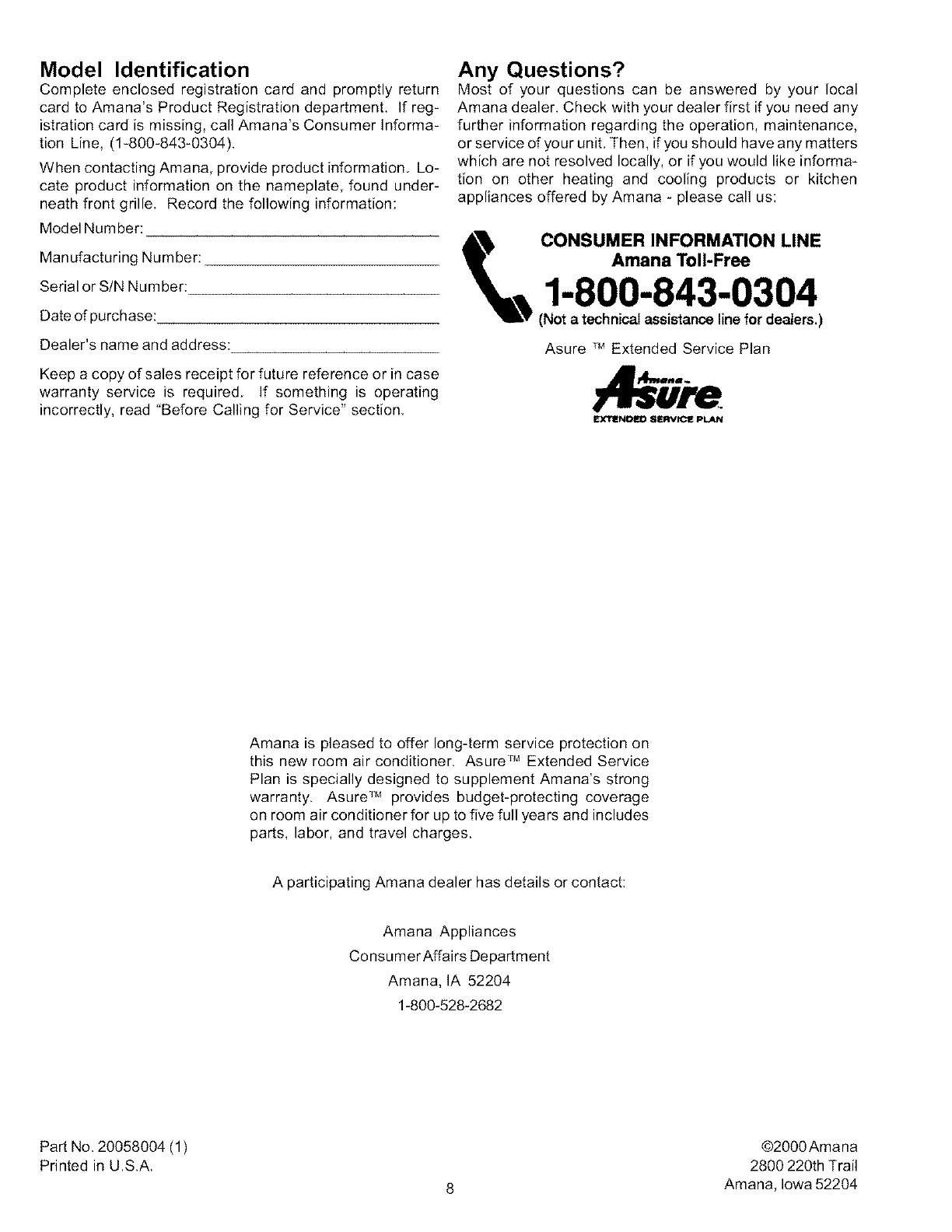 AMANA Air Conditioner Room (42) Manual L0807341 AMANA Air Conditioner Room (42) Owner's Manual, AMANA Air Conditioner Room (42) installation guides