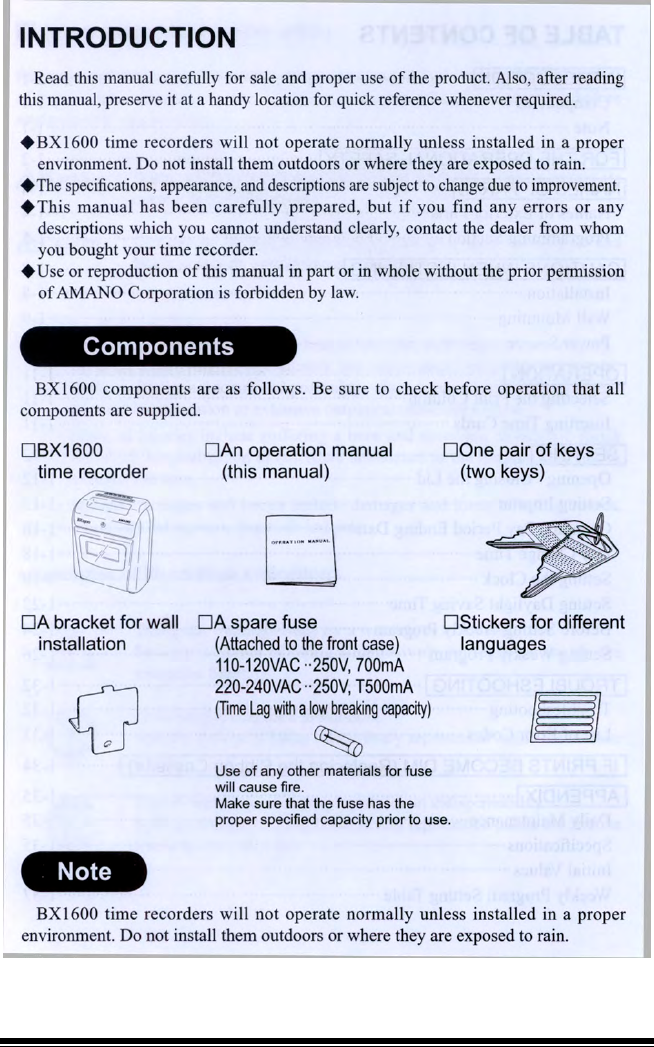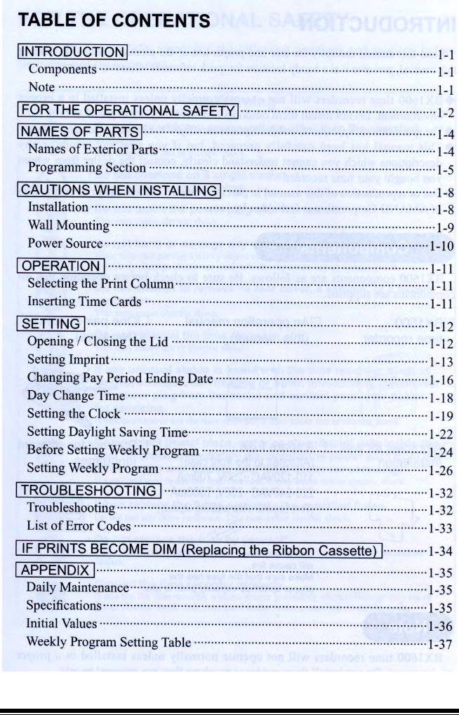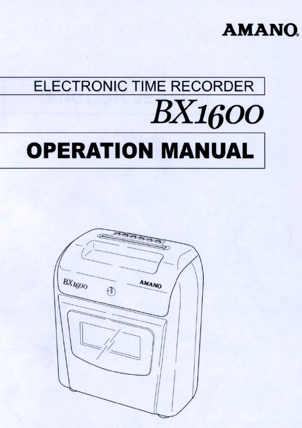 Amano Bx 1600 Electronic Time Recorder Operation Manual BX1600