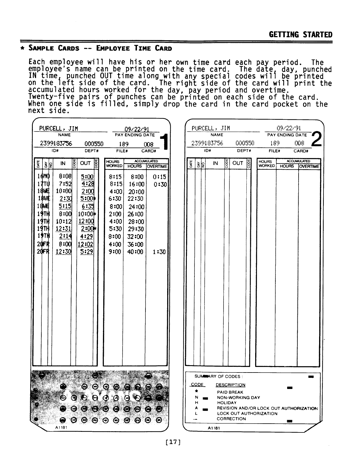 Individual Time Card Summary with Pay Rates (5 E and 6 E)