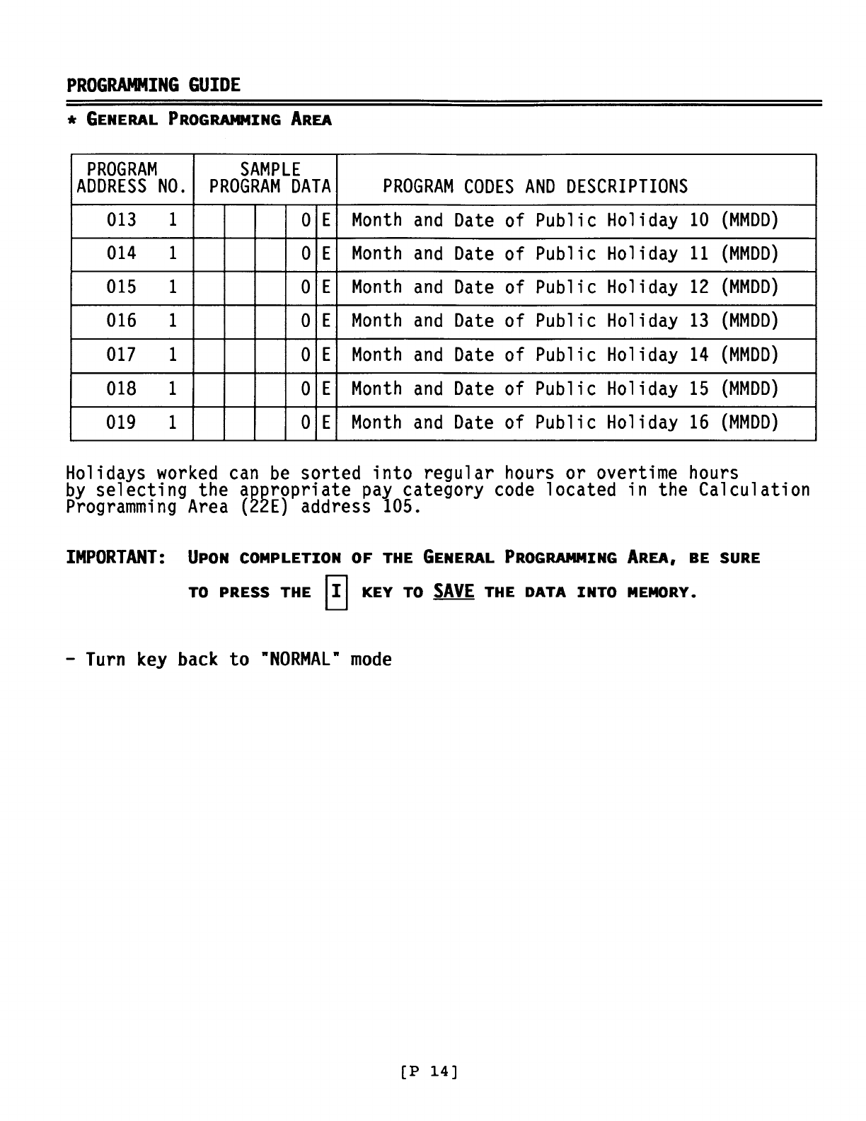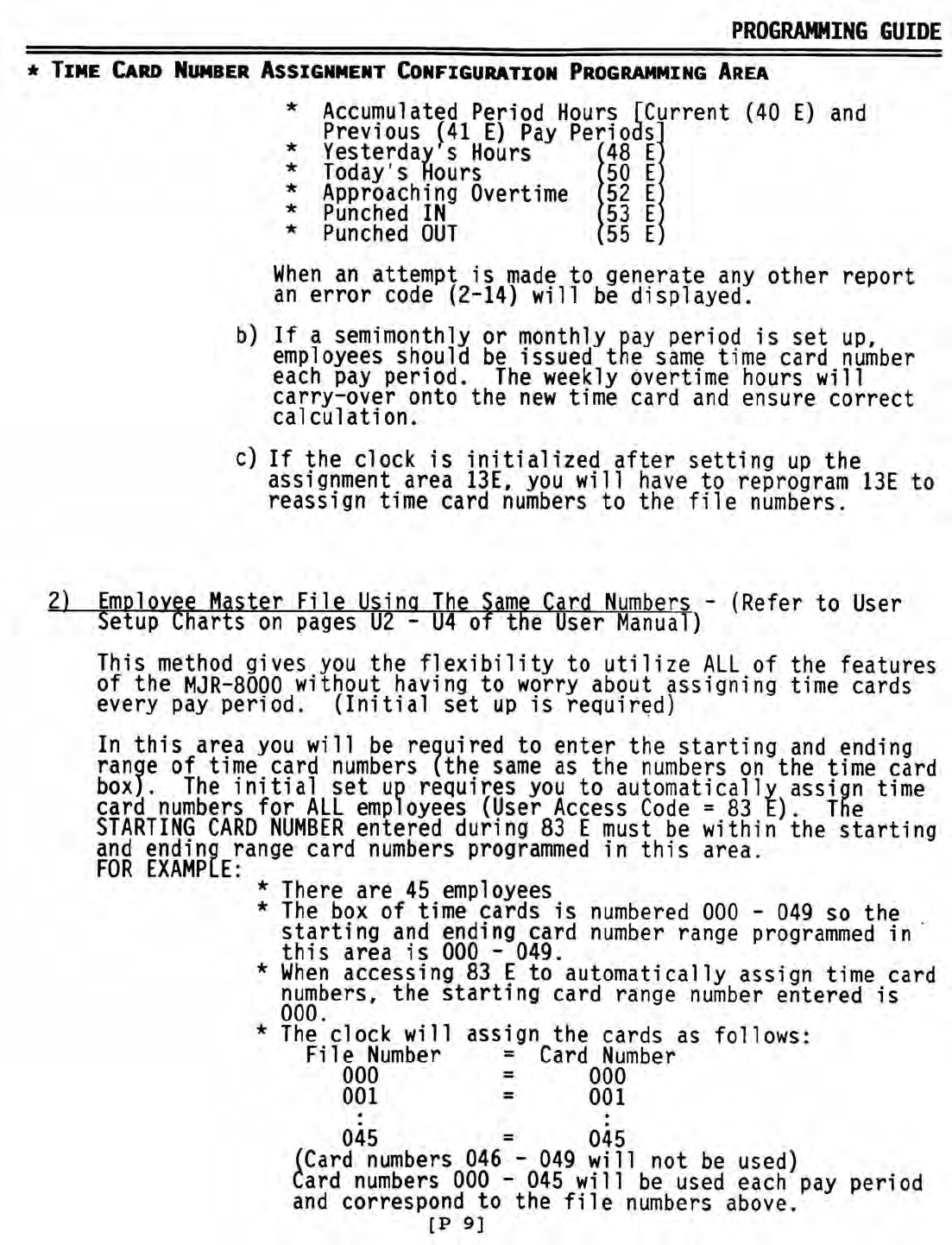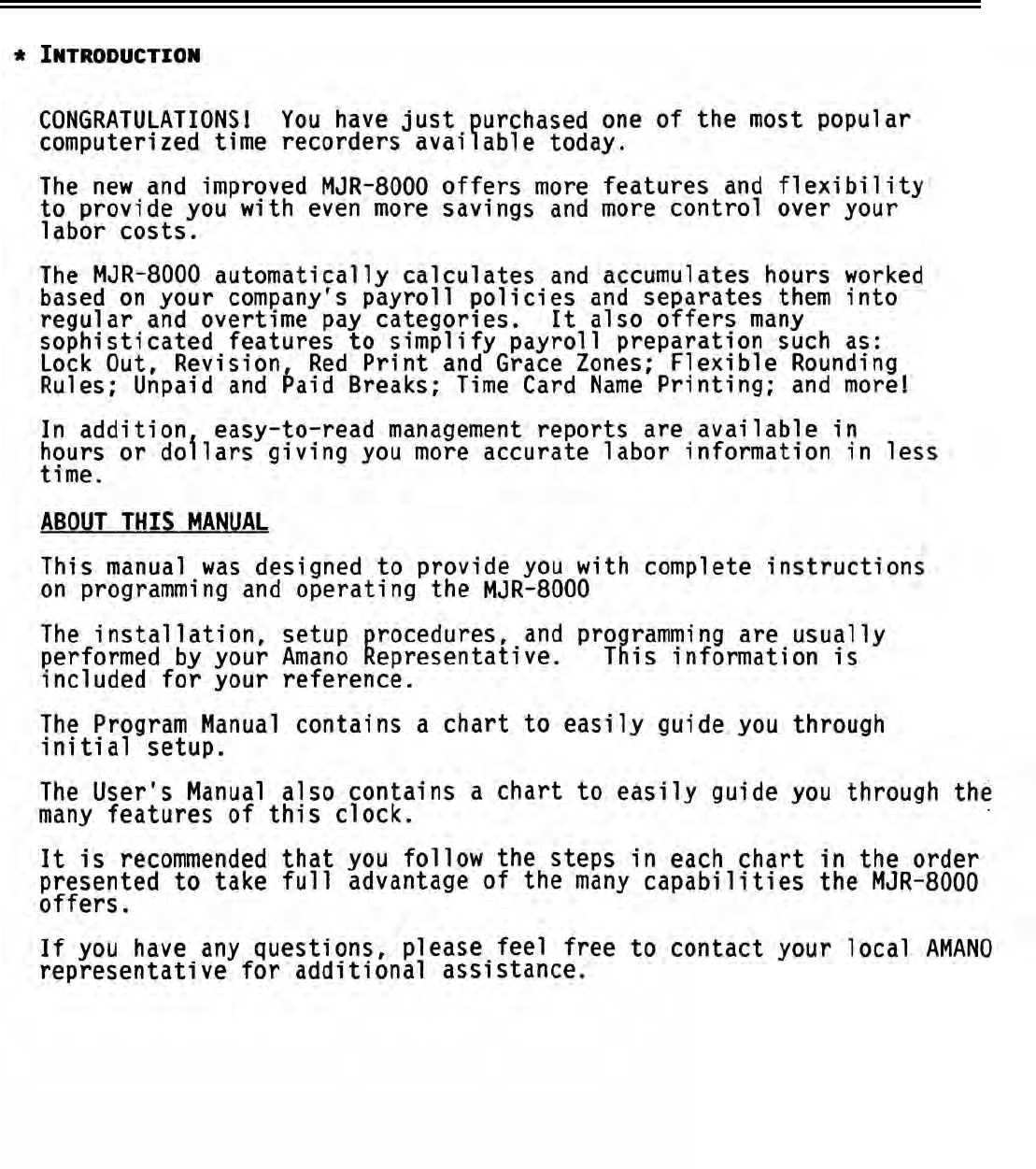 Amano Mjr 8000 Computerized Calculating Time Clock Programming User Guide Series