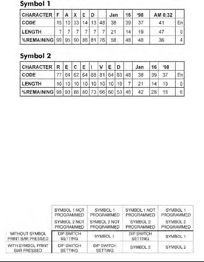 The characters listed are used to design Symbol 1 and Symbol 2.