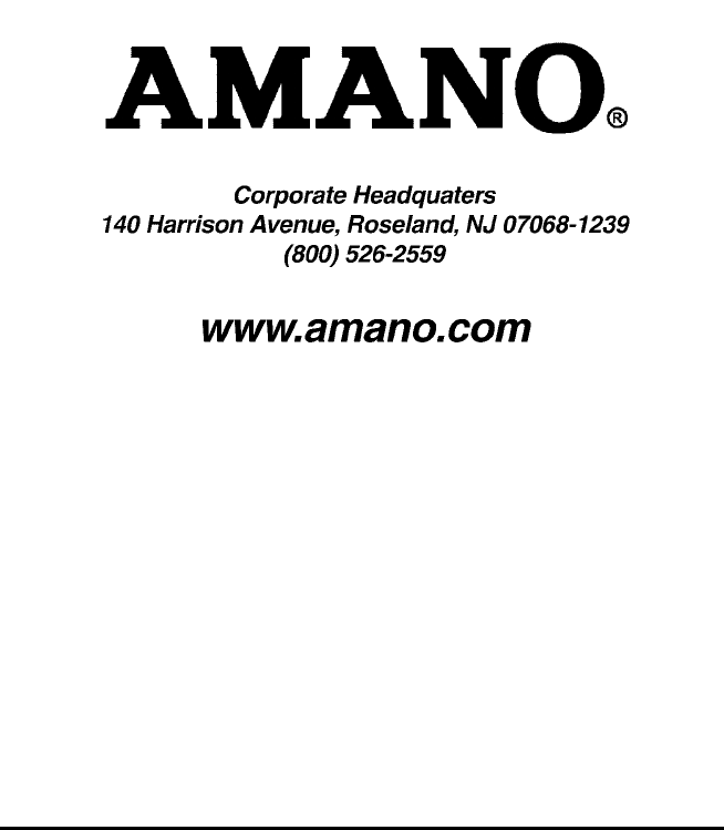 AJR-187601 Copyright © 2005 Amano Cincinnati, Inc. Printed in USA 5/05/0