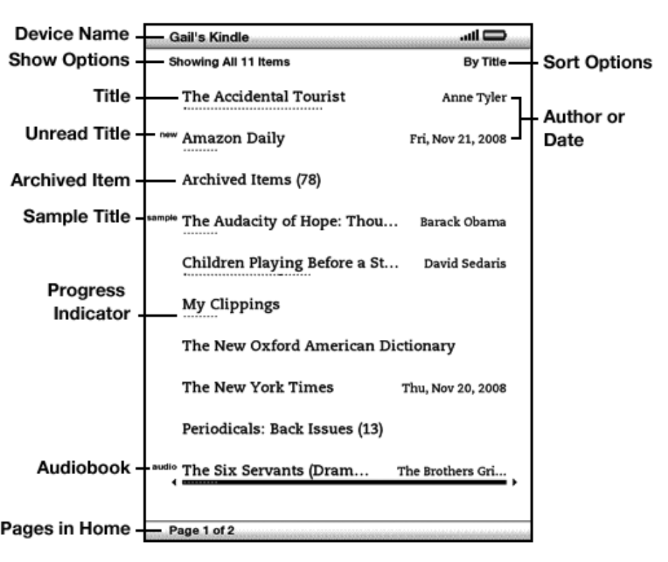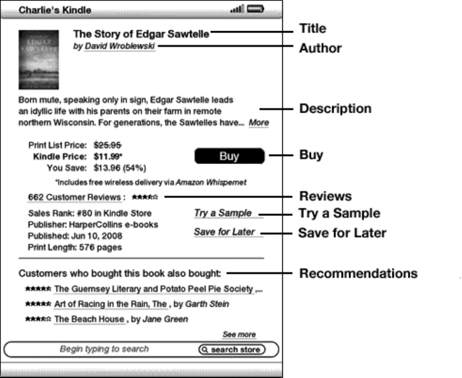 Amazon Kindle device software, the Amazon Kindle Quick Start Guide, and the