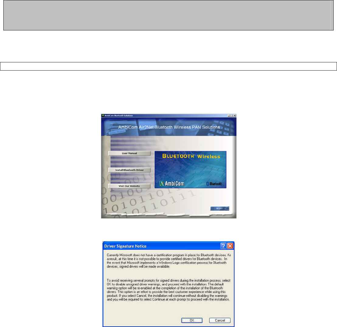 2. Click “Install Bluetooth Driver”, and then click “Next”.
