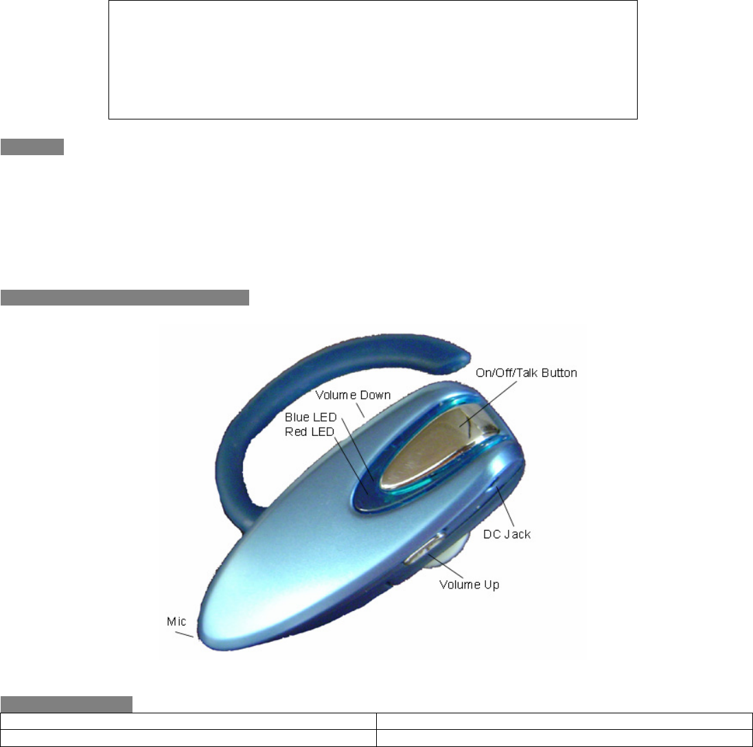 Note: Do not operate this headset while driving, operating machinery or outdoors activities.