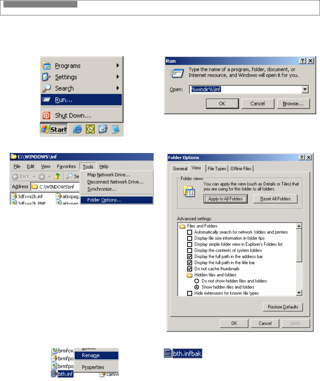 Step 1 - Renaming The Microsoft XP Service Pack 2 Generic Bluetooth Driver
