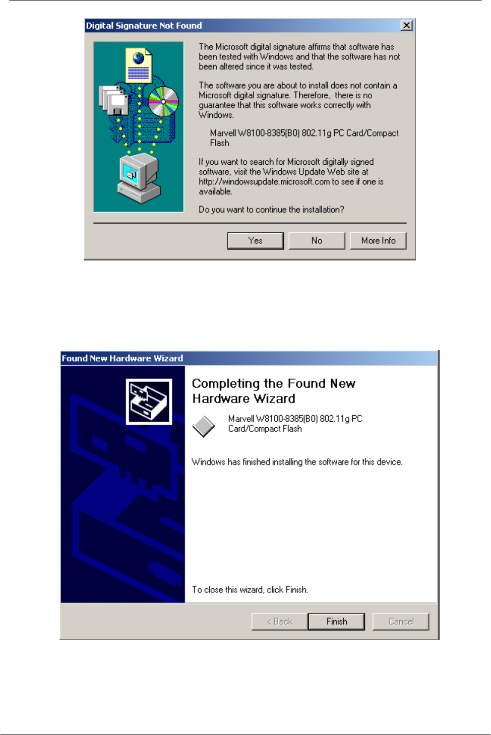 2. After Windows 2000 detects the Compact Flash Wireless LAN Card, the Found