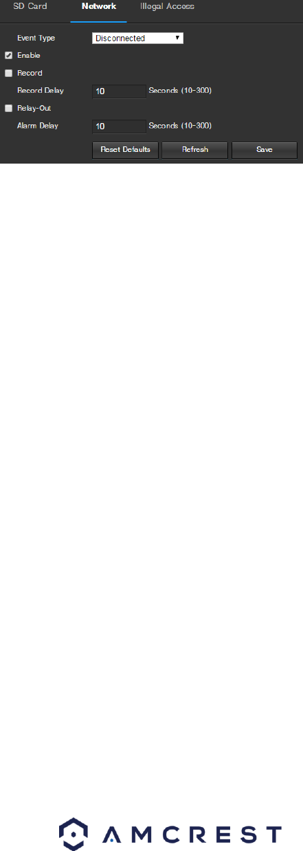 Record Delay – Record Delay specifies in seconds how long the delay between alarm activation and recording