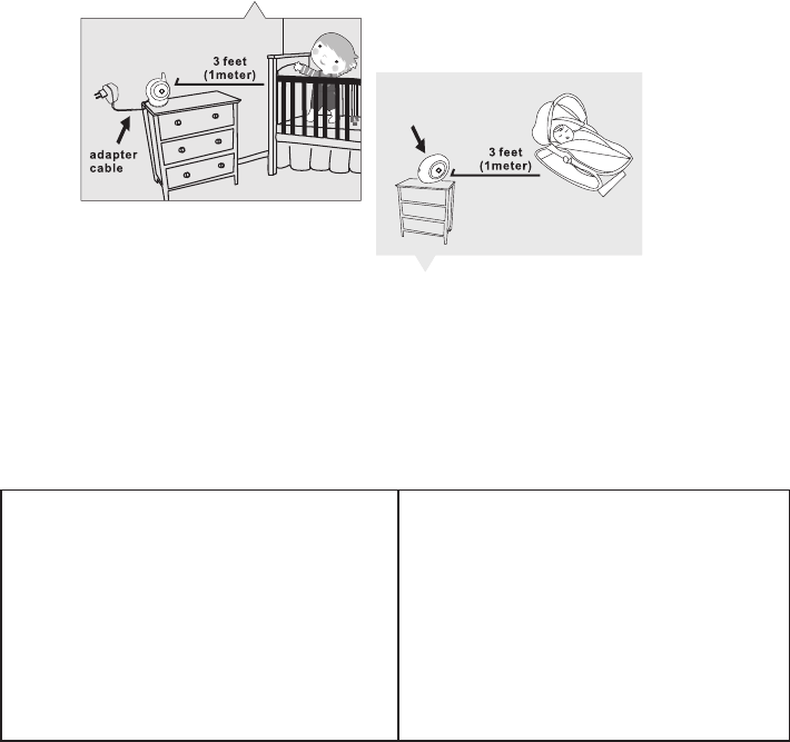 - Make sure the camera unit and power adapter cable are always out of reach of the