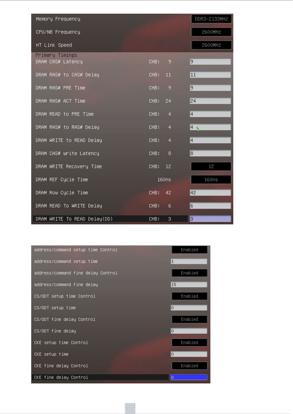Figure 10: Example settings for DDR3-2133 memory clock mode (2 DIMMs, one DIMM per channel)