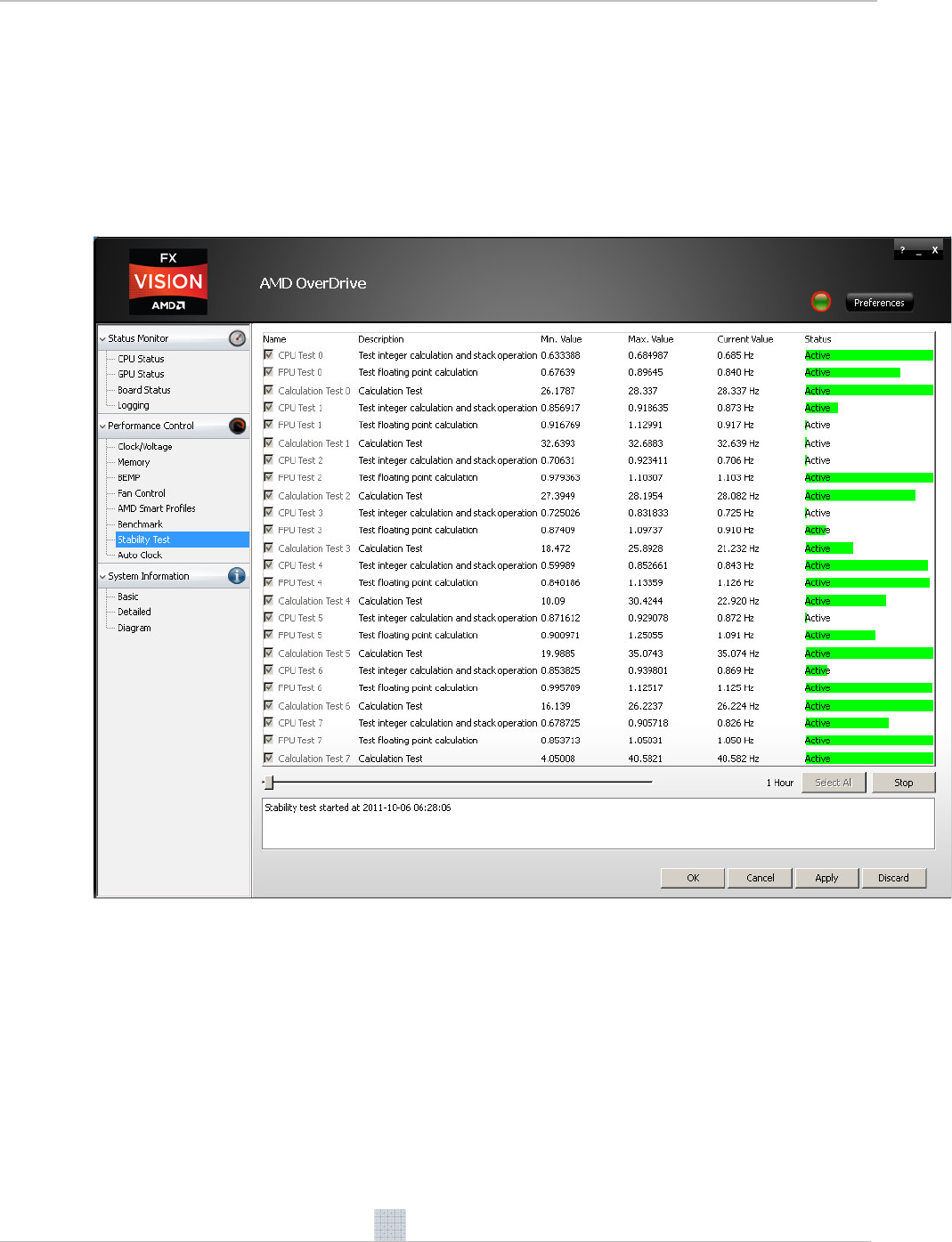 3) Start the AMD OverDrive utility stability tester