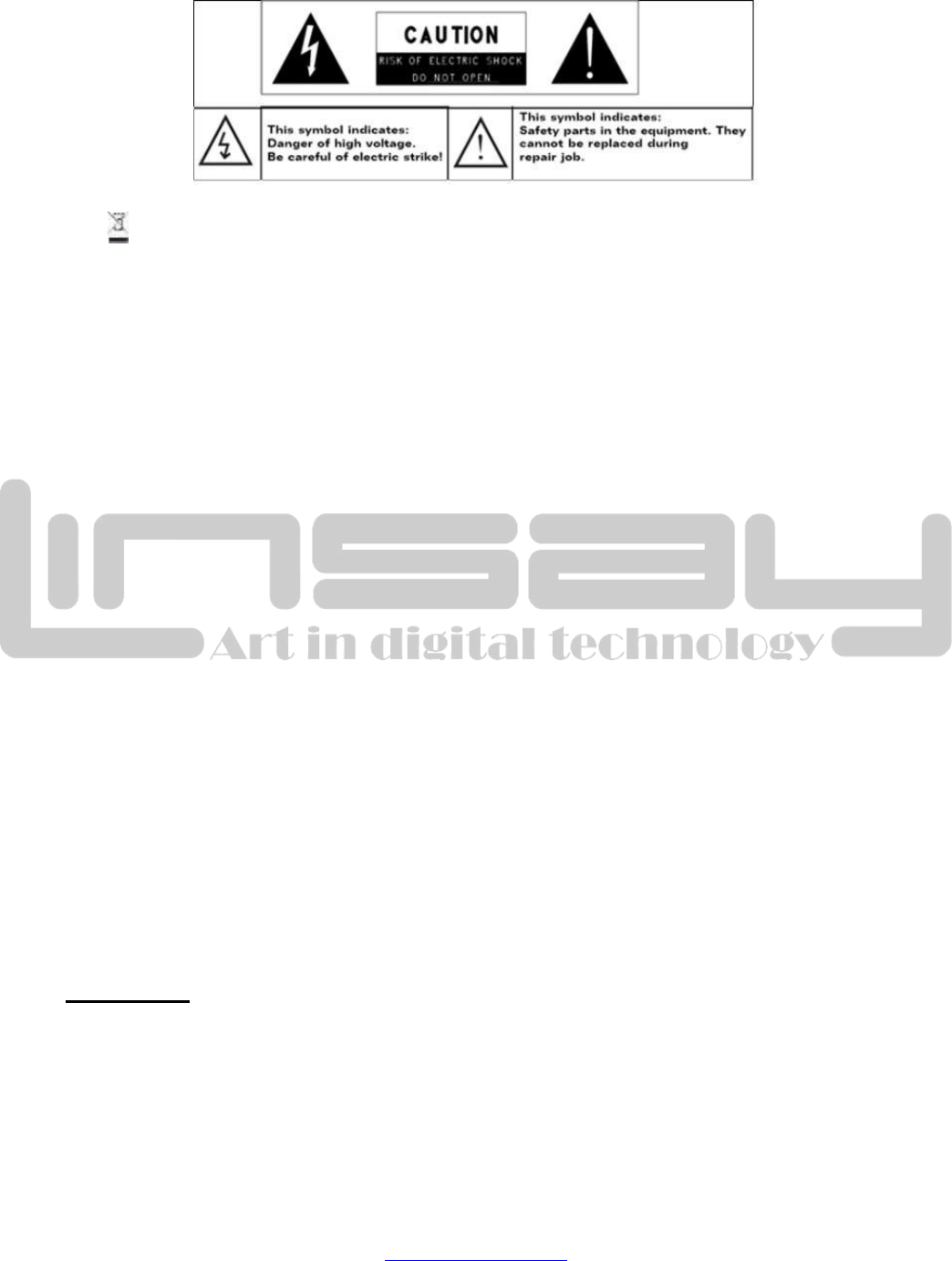 • -To reduce the risk of electric shock, do not remove the cover (or back) as there are no user-serviceable parts inside. Refer servicing to qualified