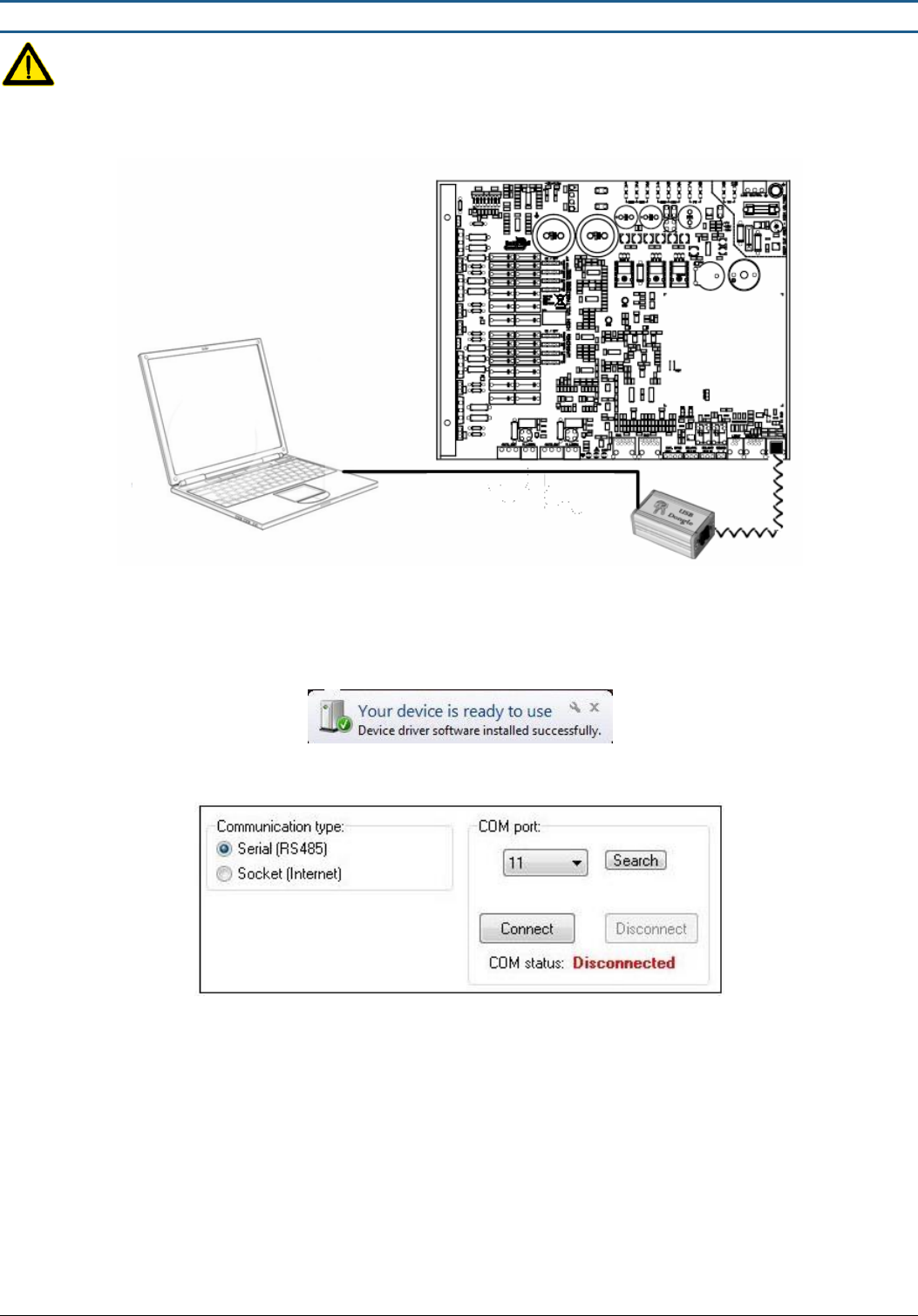 Install software and then connect the USB Hardware Key to the PC and the ACE. The white telephone cable which is