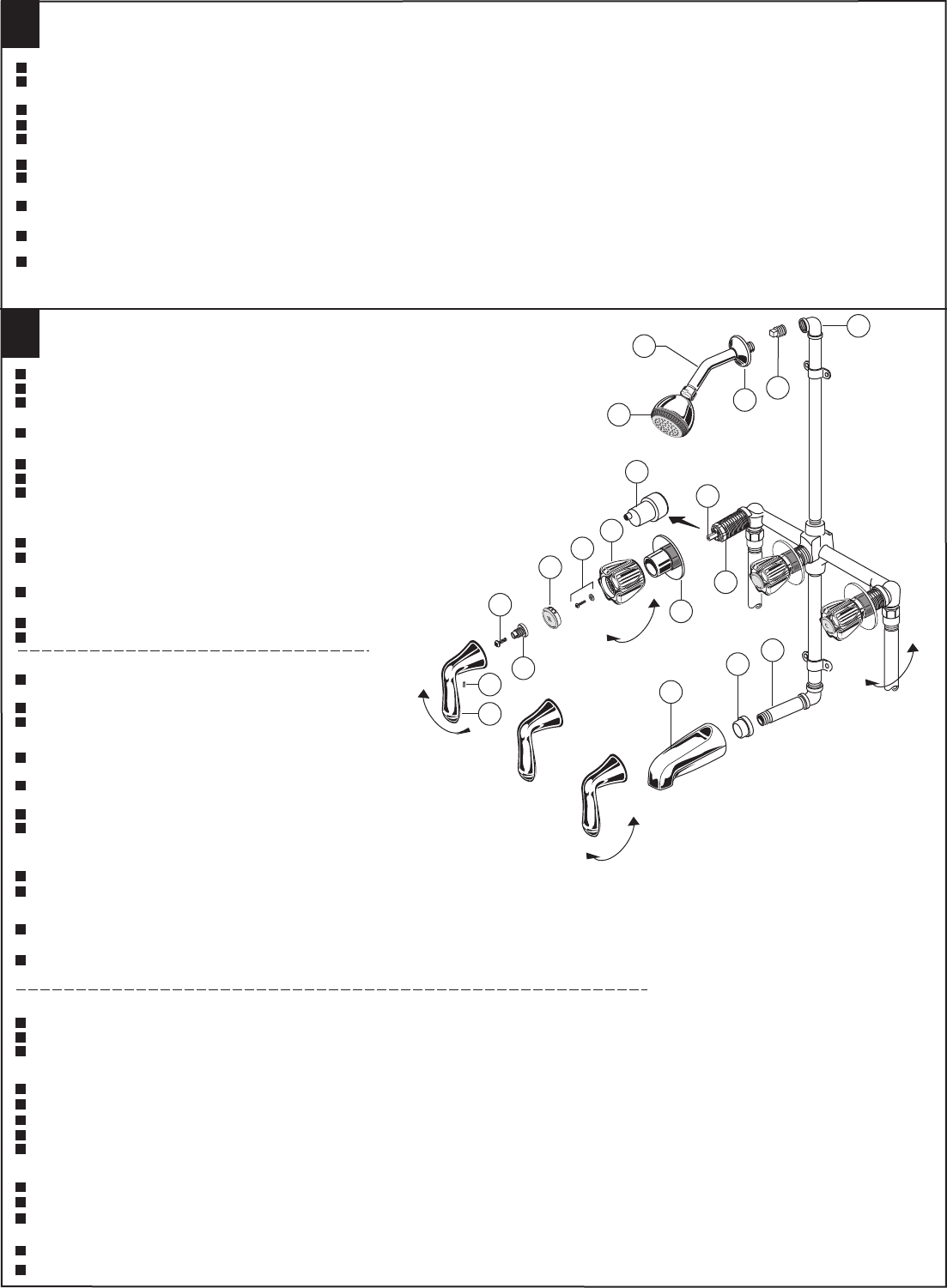Préparer la COLONNE MONTANTE (4) et le COUDE (3) pour la DOUCHE. Connecter à l’orifice de sortie HAUT portant la mention " SHR "