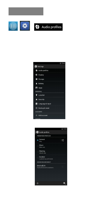 Menú> Ajustes>perfiles de audio.