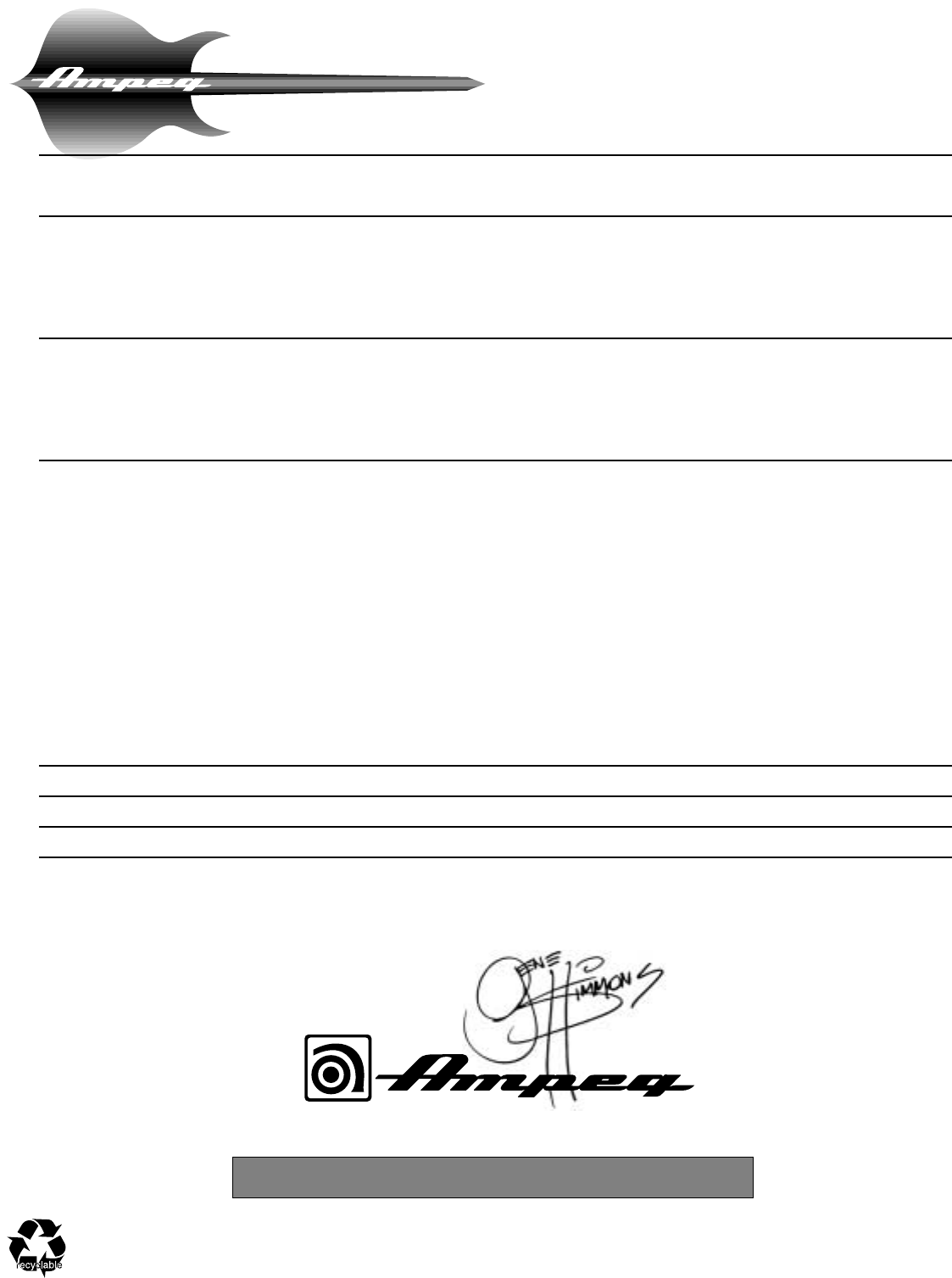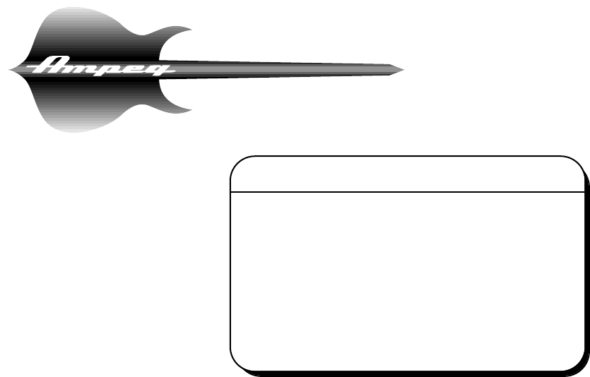 If the problem isn’t covered above, or if the steps led you here, then contact your Ampeg dealer for service informa-