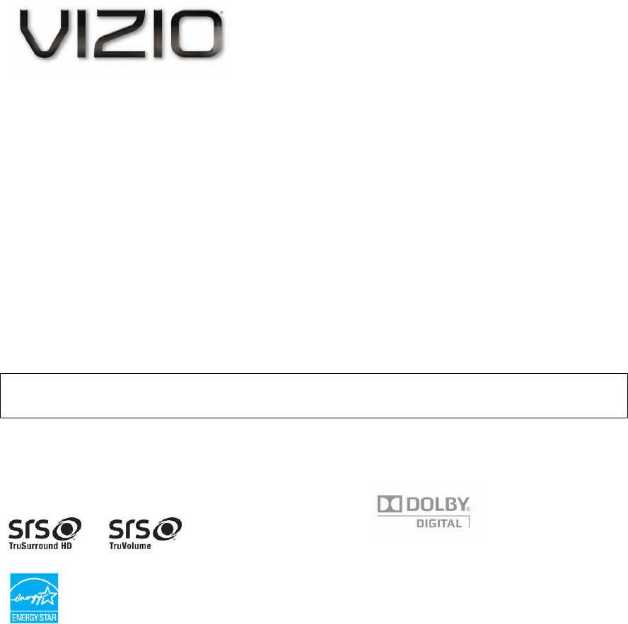 For assistance, call 877-MYVIZIO (877-698-4946) or e-mail us at www.VIZIO.com.