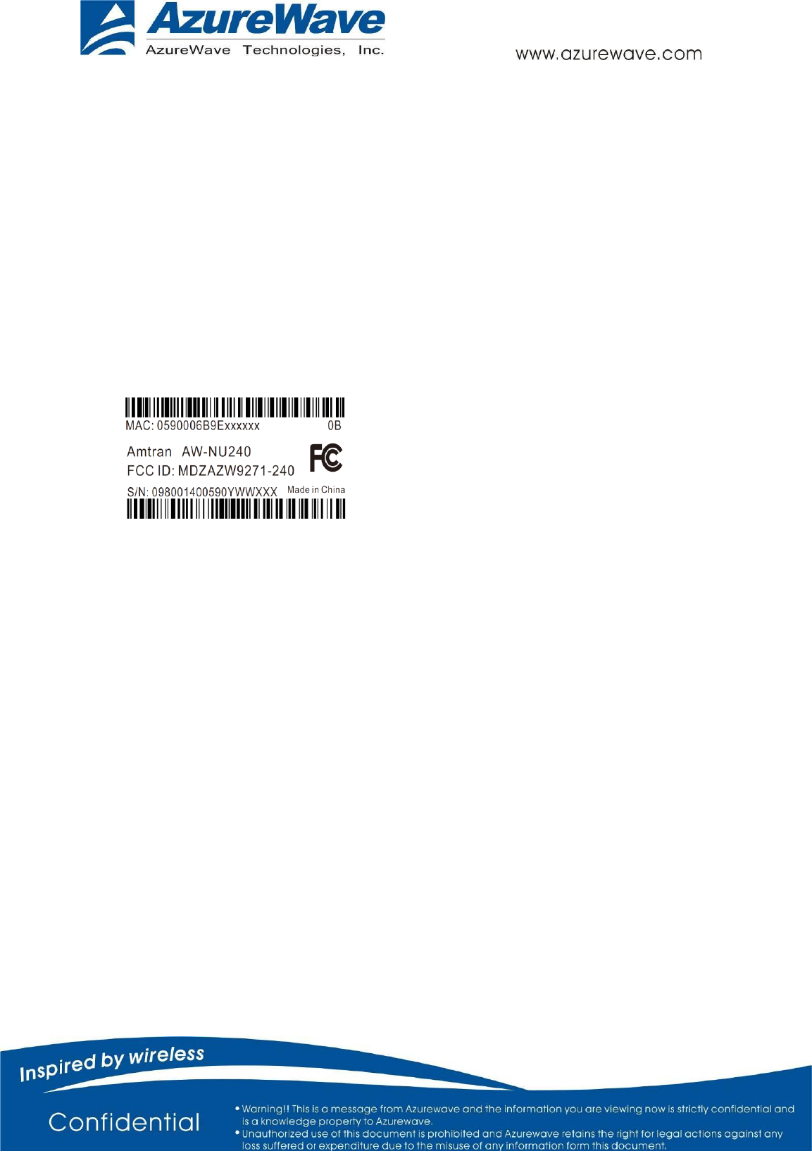 Amtran Technology Co AZW9271-240 IEEE 802.11 b/g/n USB wireless module User Manual