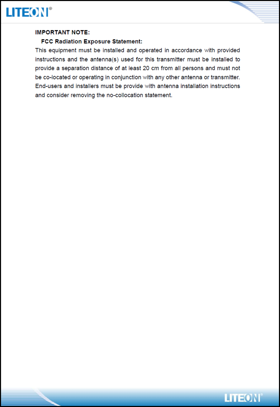 Amtran Technology Co WN4631R 802.11n, 2.4G 1T1R Wireless LAN USB Module User Manual LiteOn Technology Corp