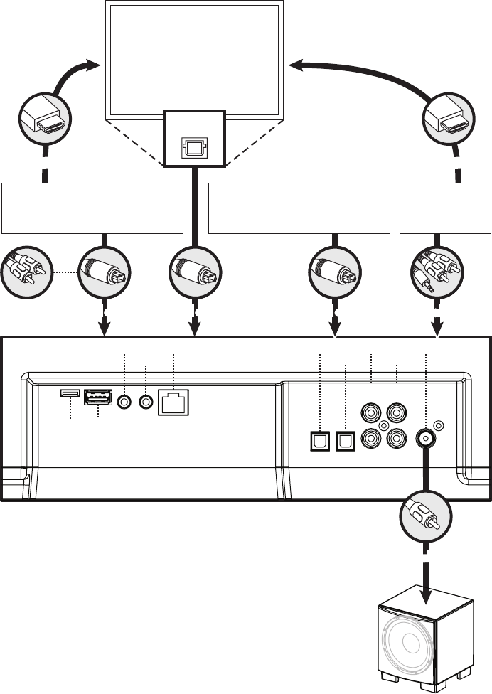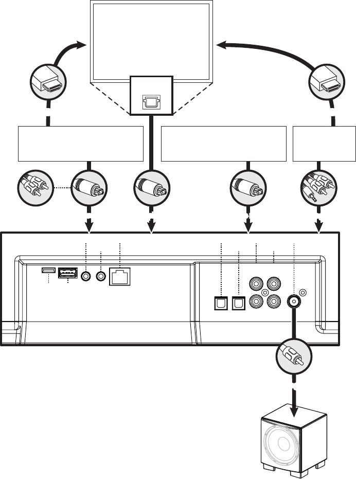 connexion Sub Out de la barre de son et à l’entrée