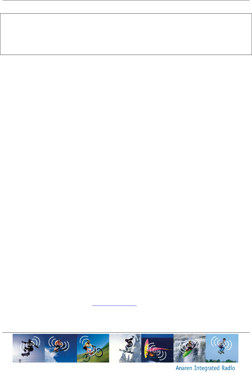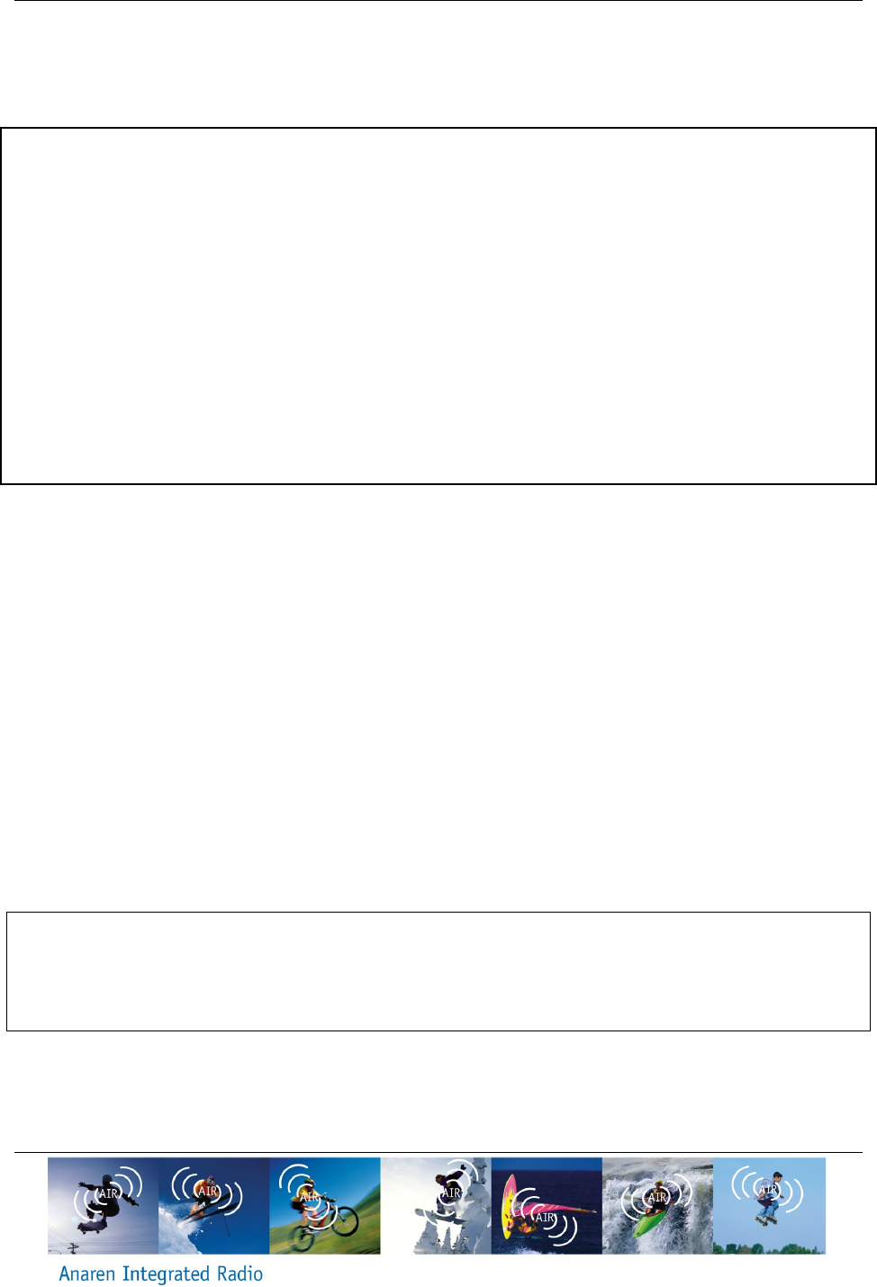 Anaren, Inc. 902-928 MHZ TRANSCEIVER 20170227 v1 11 11524600 A1101R09x Users Manual 2