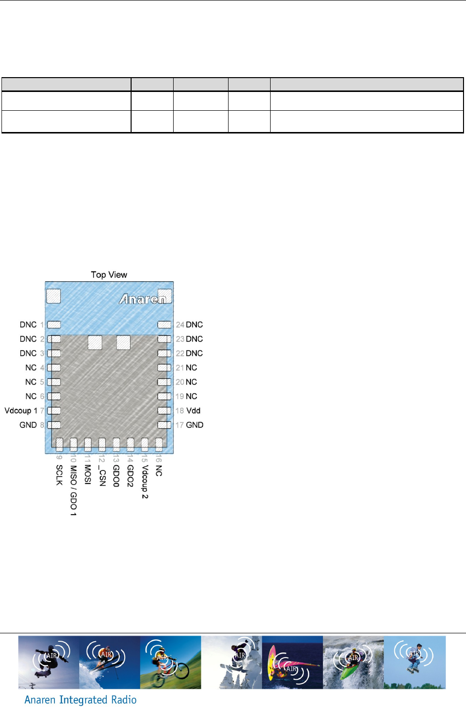 operation. Please see the CC1101 data sheet (www.ti.com) for how to control the modules.