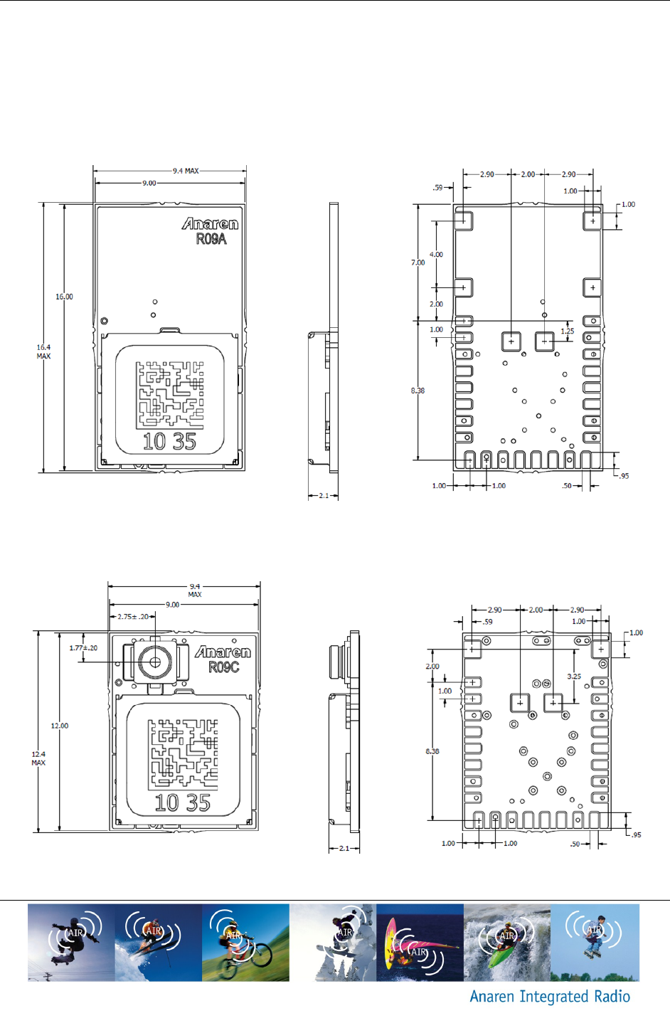 The A1101R09A measure 9x16x2.5mm and A1101R09C measures 9x12x2.5mm. The modules