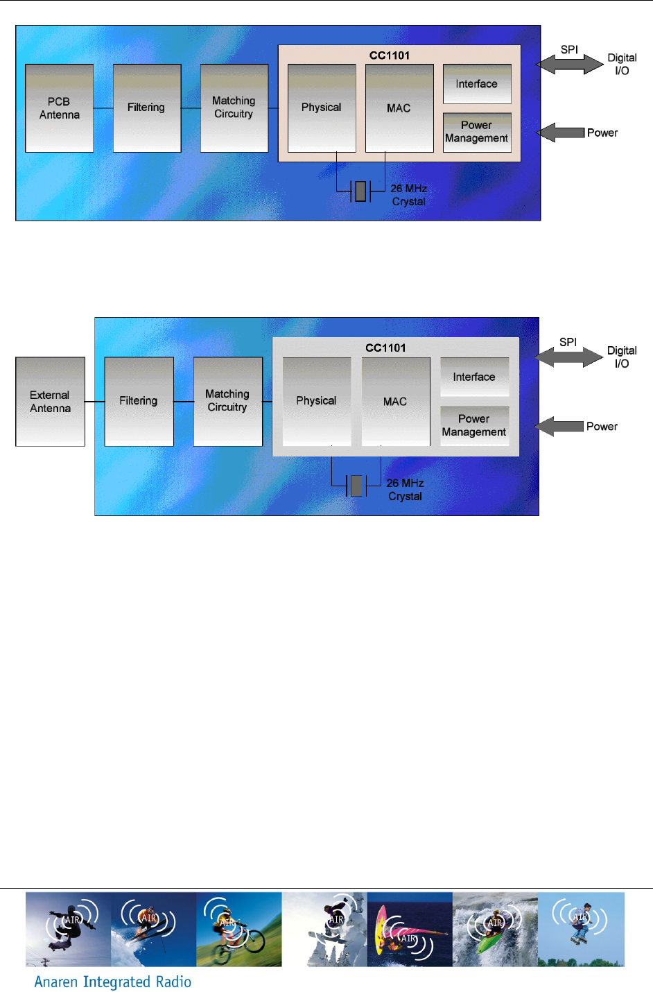 antenna, whereas the A1101R09C utilizes an external antenna through a U.FL connector (see