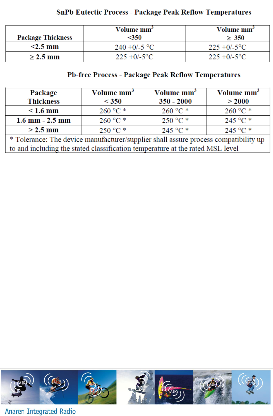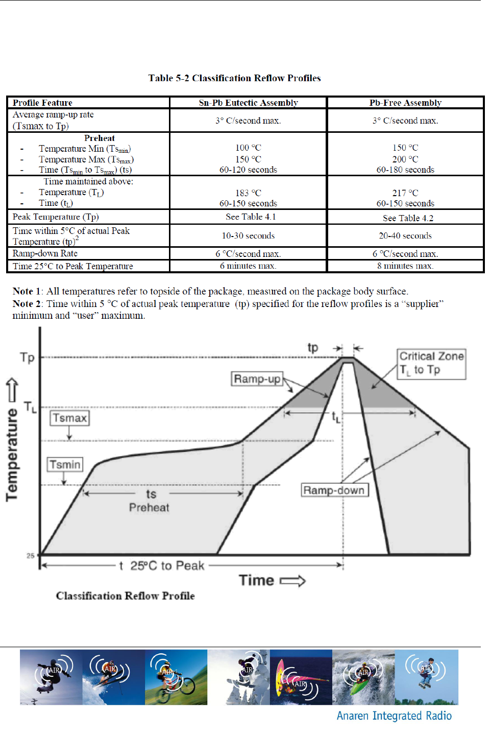 The AIR Radio Module recommended solder reflow profile is based on IPC/JEDEC J-STD-020.