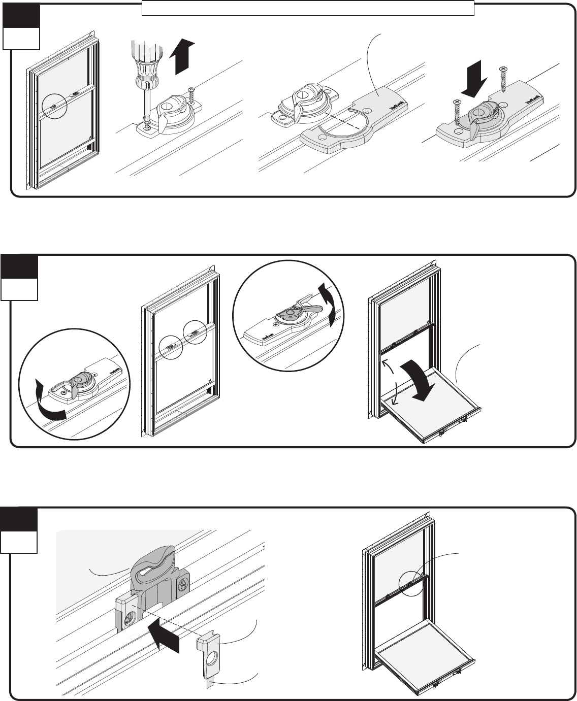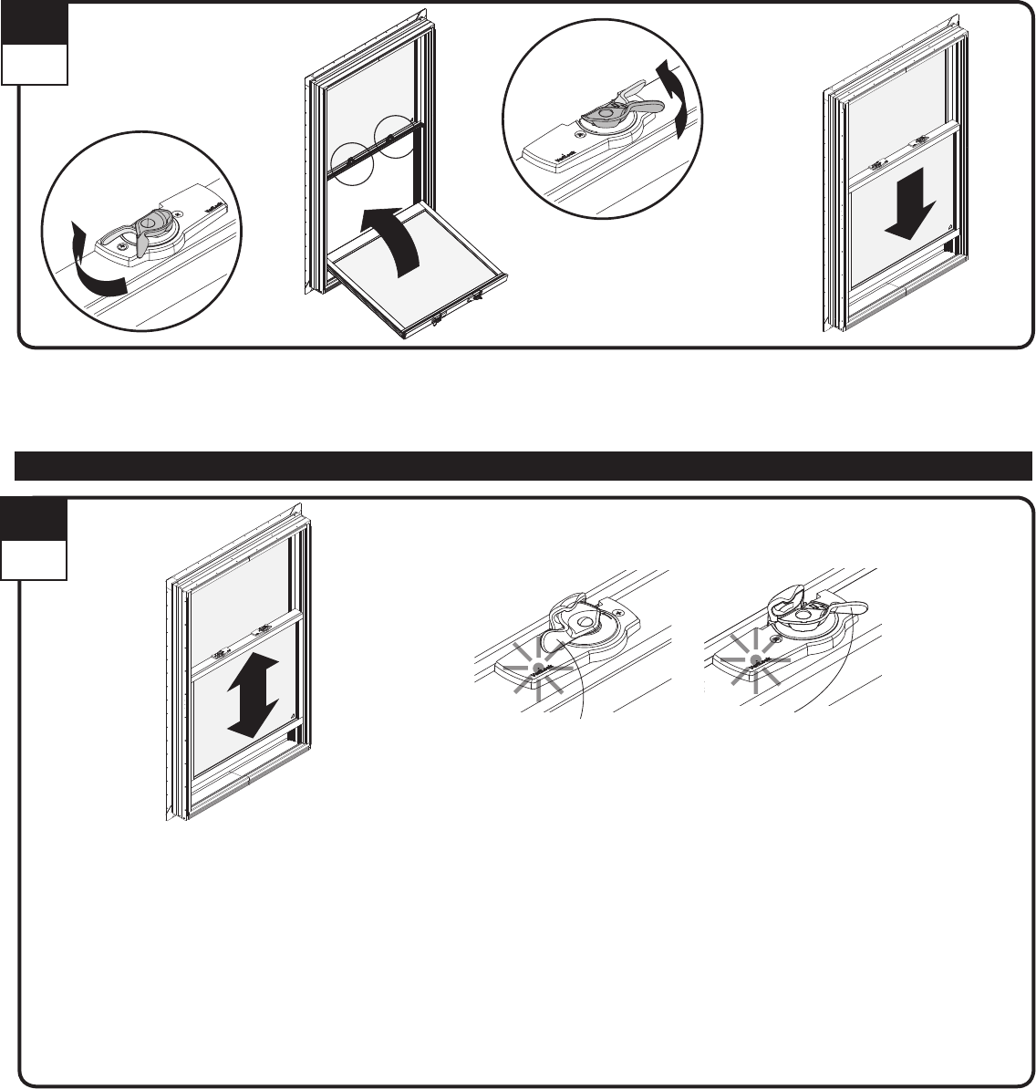 Retract tilt latches by pushing lock handle(s) outward. Tilt bottom sash in and support.
