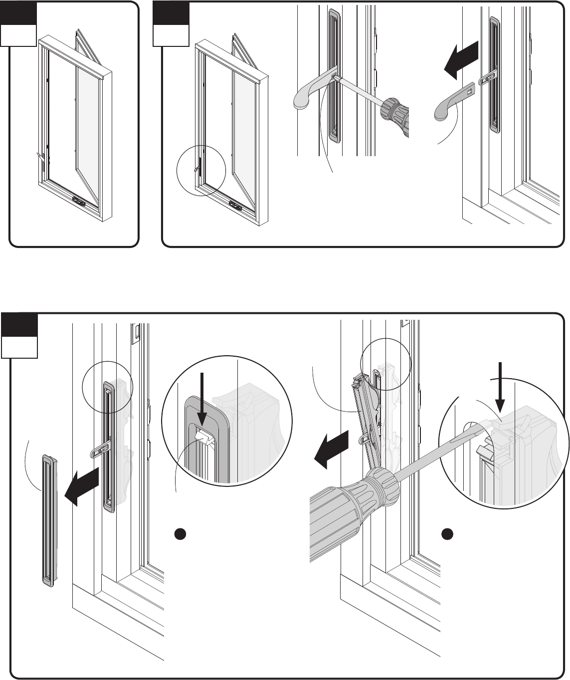 ▶Left handed casement unit shown in guide. Steps are similar for awning units, unless otherwise noted.