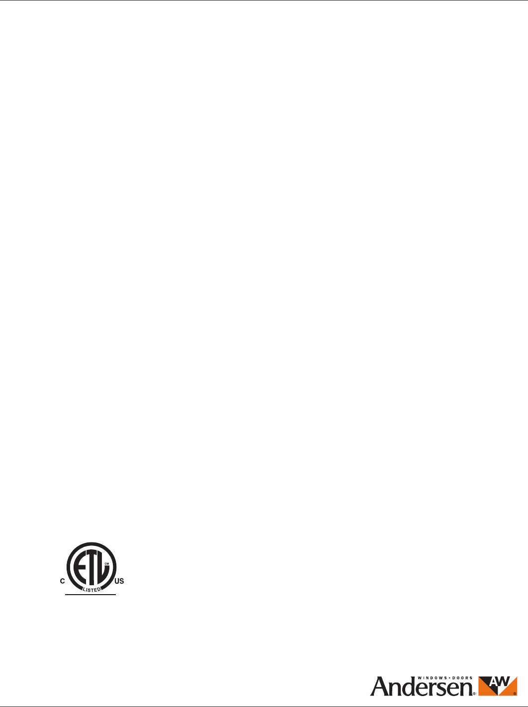 Changes or modifications not expressly approved by Andersen may void the user's authority to operate the