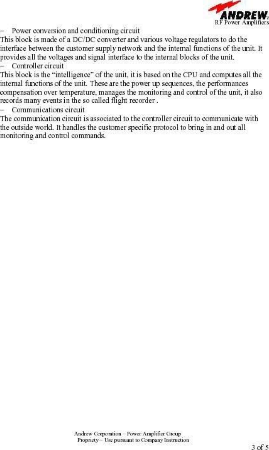Andrew Corporation, Base Station Subsystems Group High Efficiency Power Amplifier HePA1900V3 HePA1900 V3 Users Manual 1 1