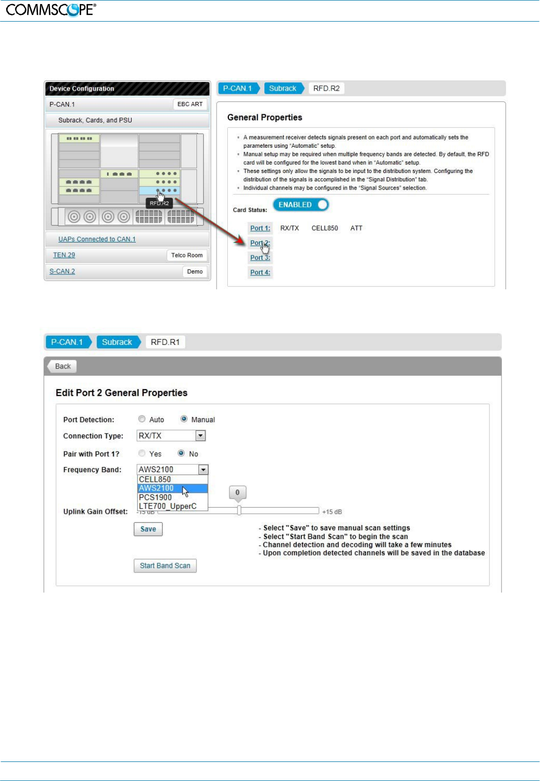 recommended. Specifying the band for a port will reduce the required scan time. To run a manual channel scan: