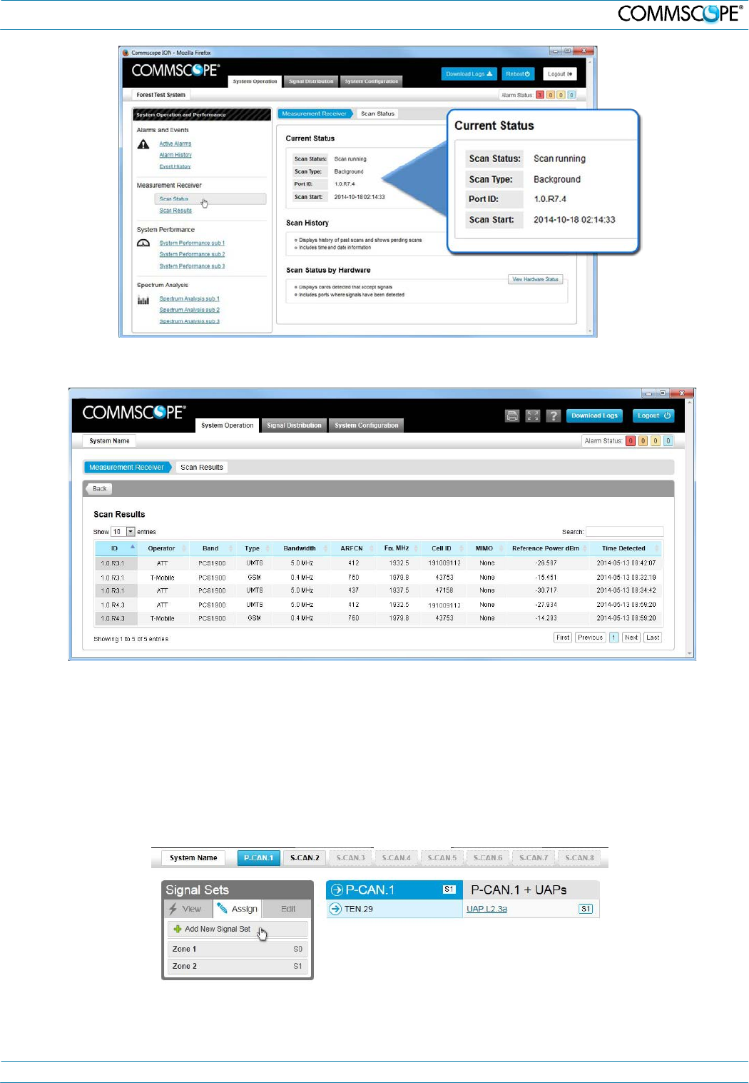 The scan tasks results are available on the measurement receiver pages, which provide the detailed information about