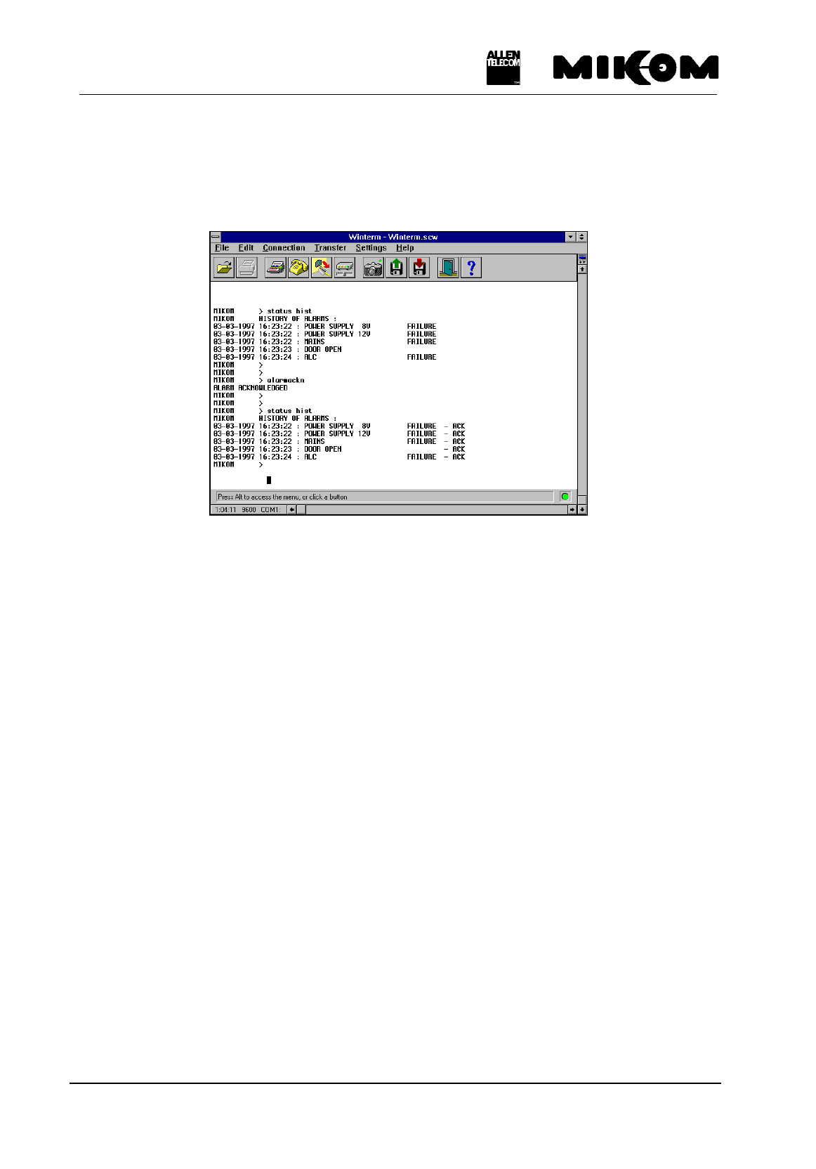 8.3 Alarm monitoring with the STATUS HIST command 56