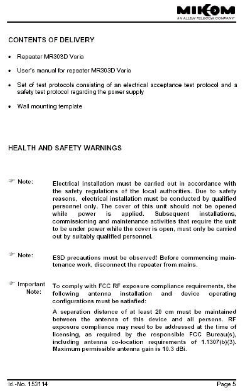 Andrew Wireless Innovations Group RPT-MR303V-24 Repeater User Manual Page5