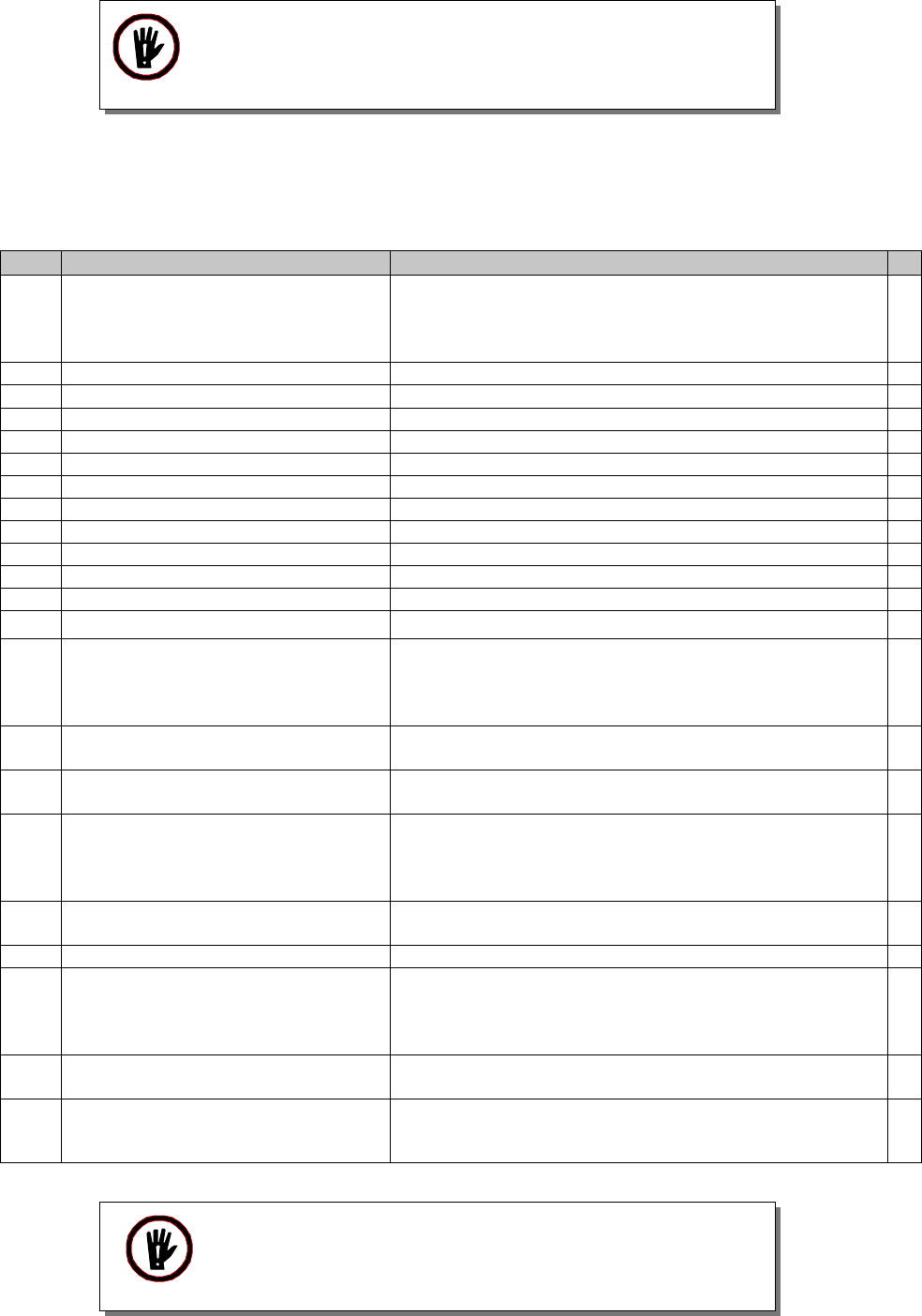 Step Item/ Action Description ♦