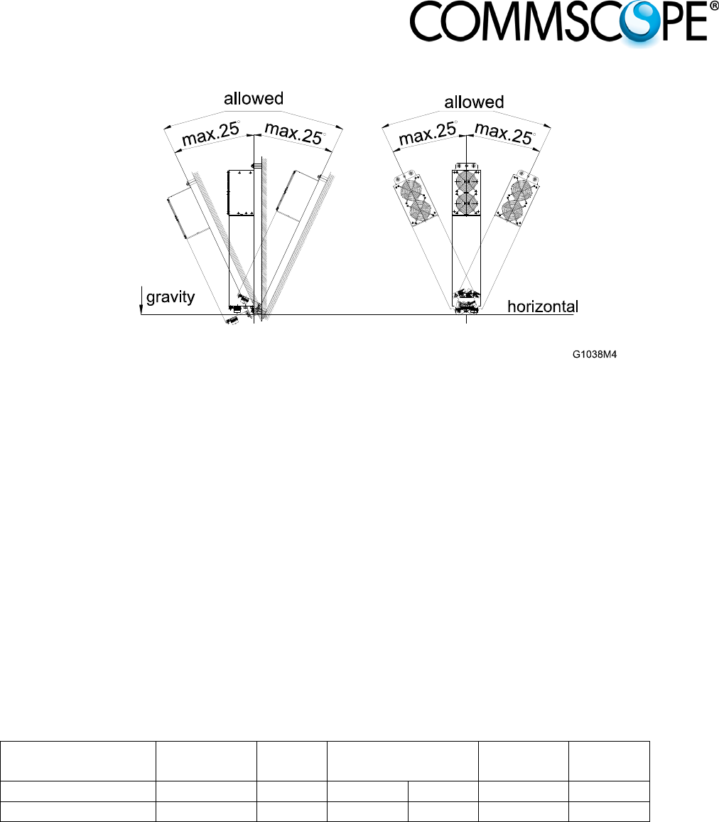 vertically with the fan unit at the top. A maximum tilt angle of 25° from a vertical position