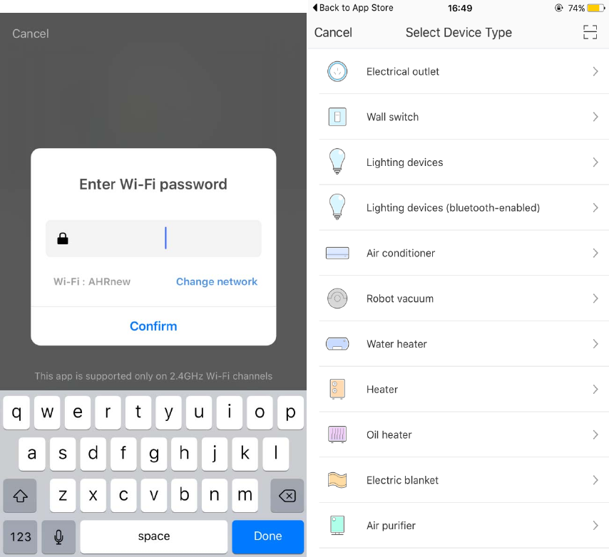 6:enter password and select device type