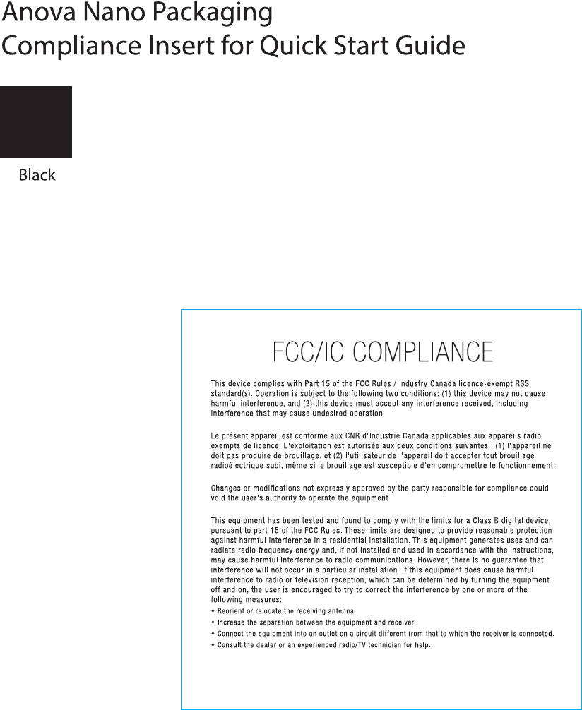 Anova Applied Electronics, Inc. Precision Cooker 2018 03 28 ComplianceInsertQSG OL copy