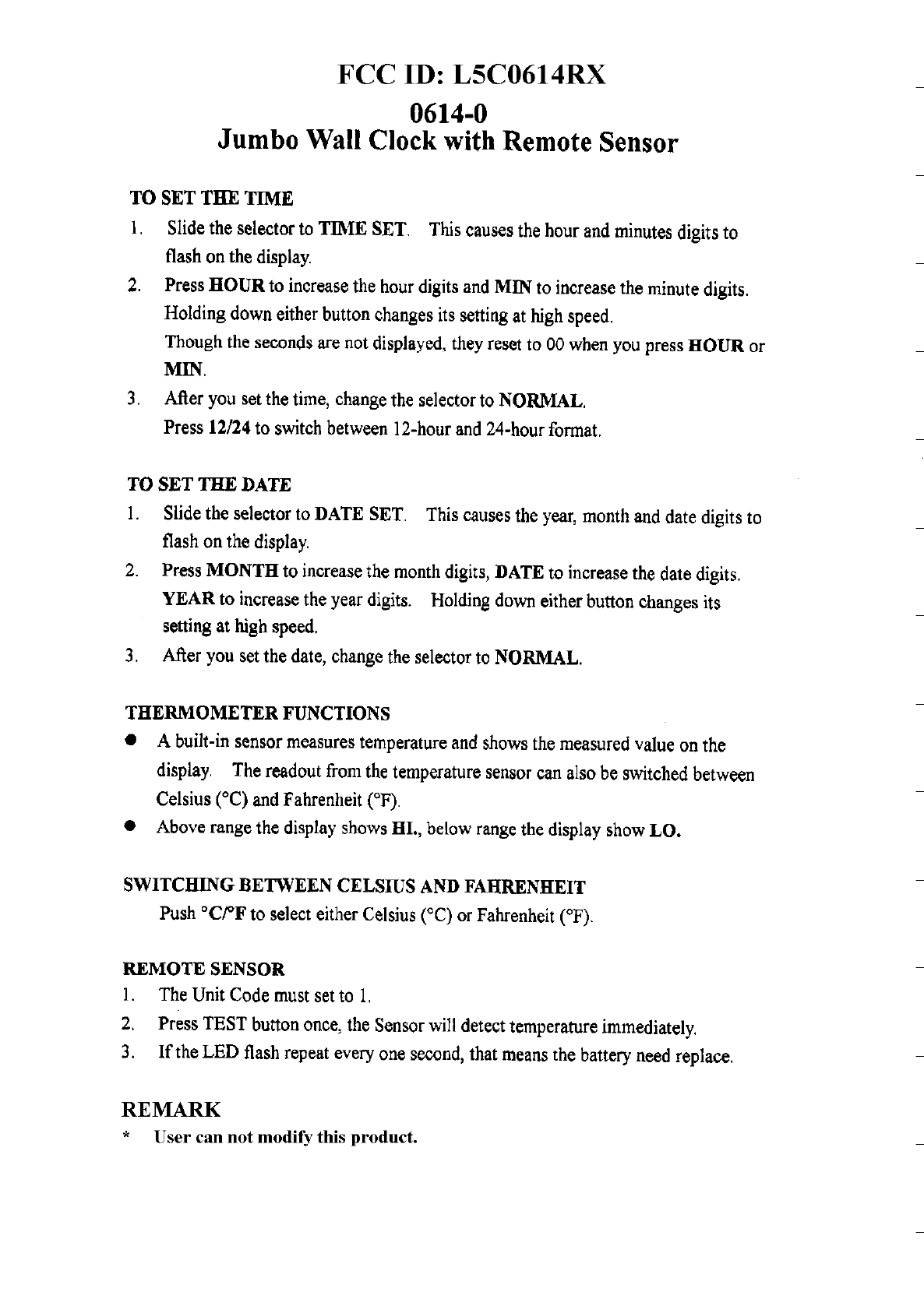 Ansen Electronics Co 0614RX Receiver unit for RF wall clock User Manual Unknown