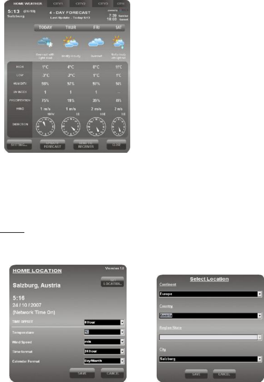 Click [SEND TO RECEIVER] to manually send the 4-day forecast data to the main unit via the PC transmitter.