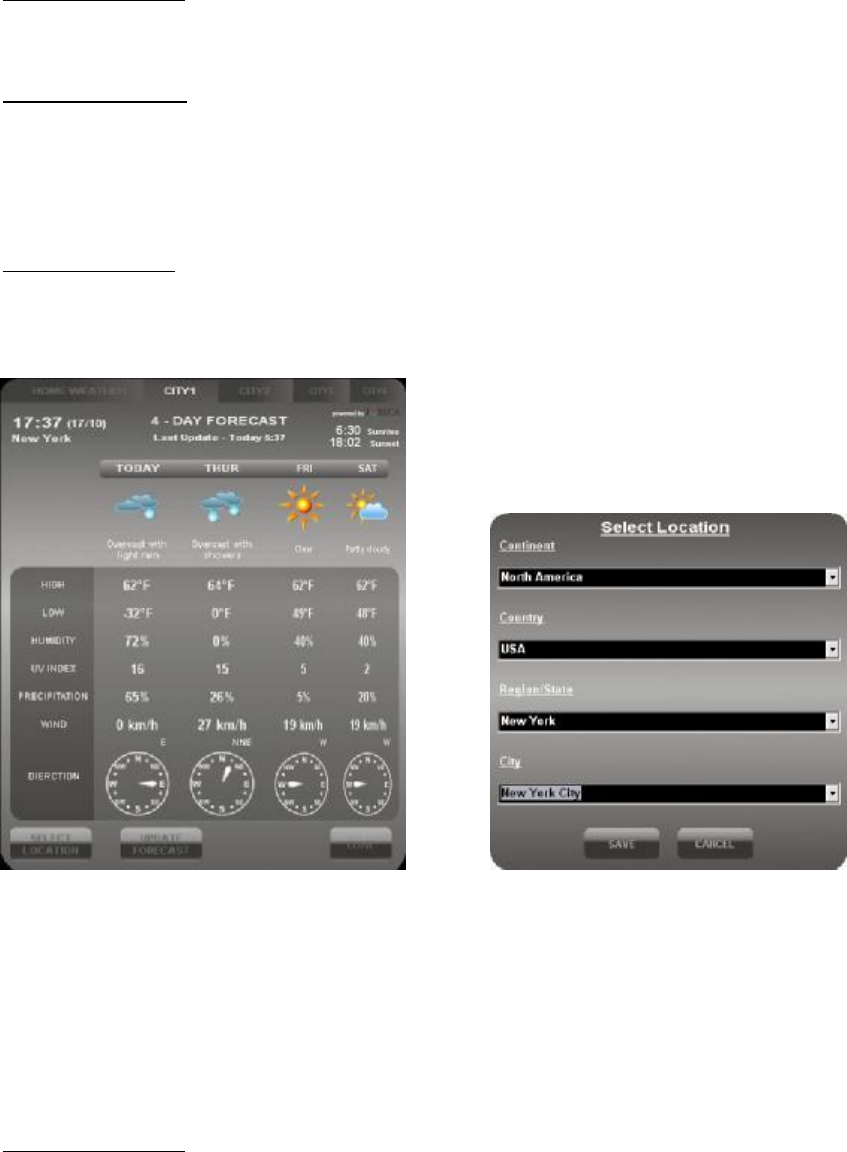 Click [UPDATE FORECAST] to manually receive 4-day forecast from the Internet of your selected city.