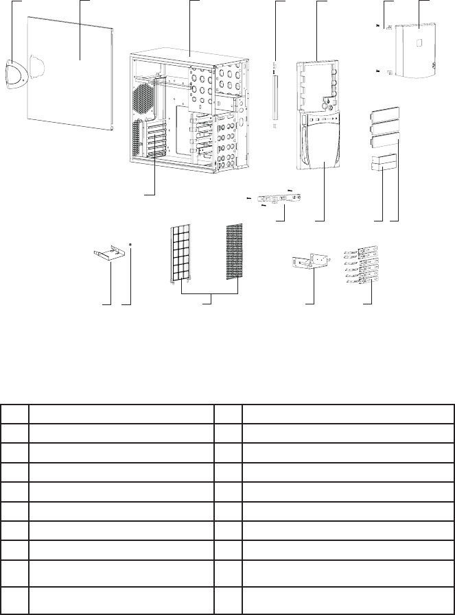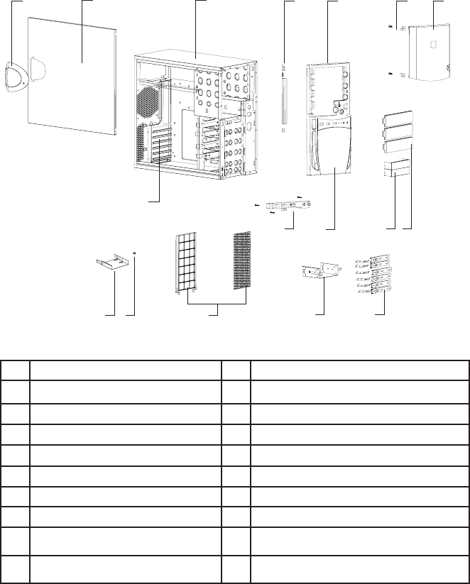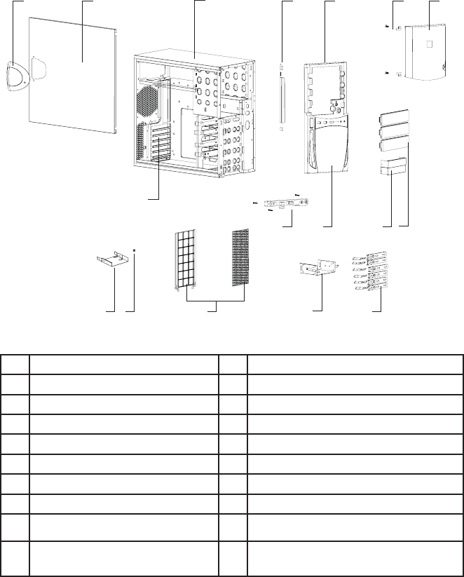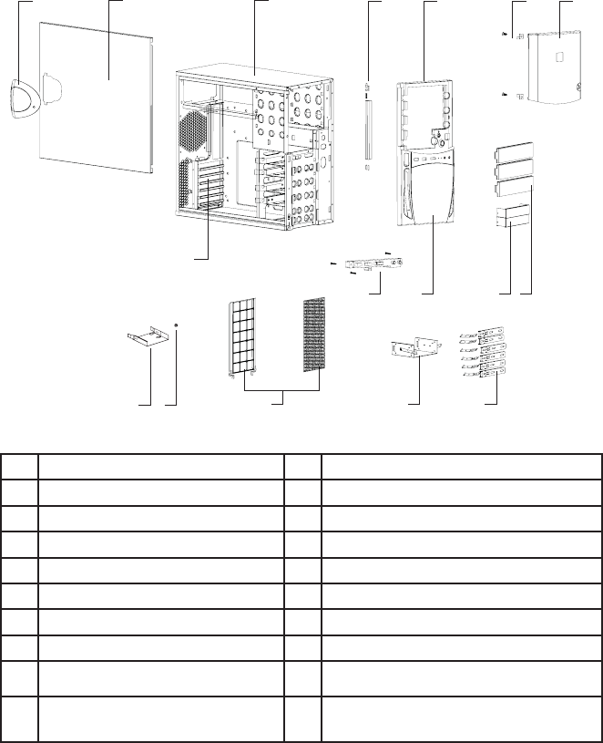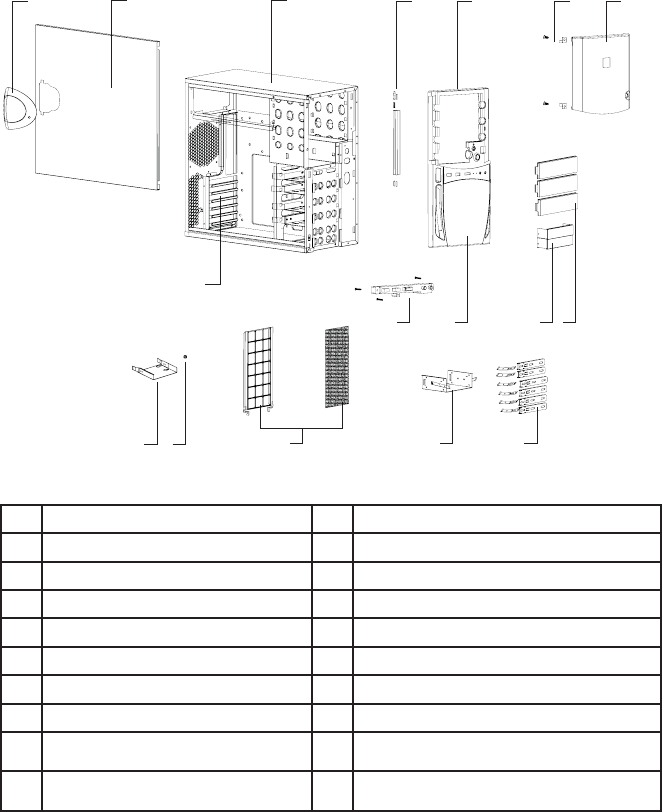 2 Panneau latéral 10 Plaque frontale de lecteur 5.25”