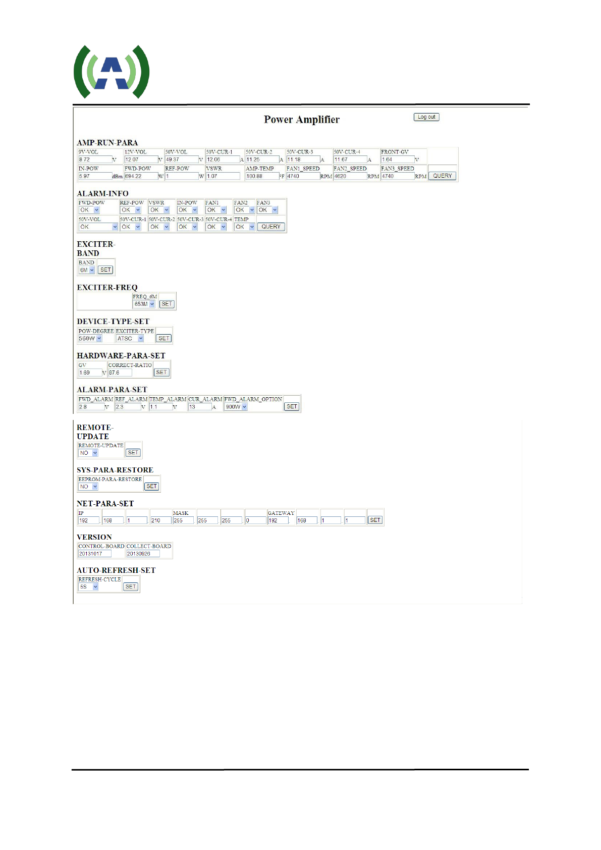1) To refresh the status of the PA unit, one could manually click the “Query” button(s) on the page, or set