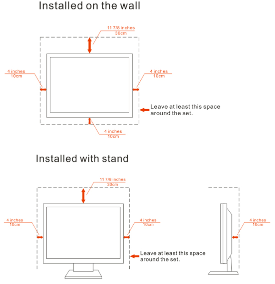the monitor on a bed, sofa, rug, or similar surface. Do not place the monitor near or over a radiator or heat