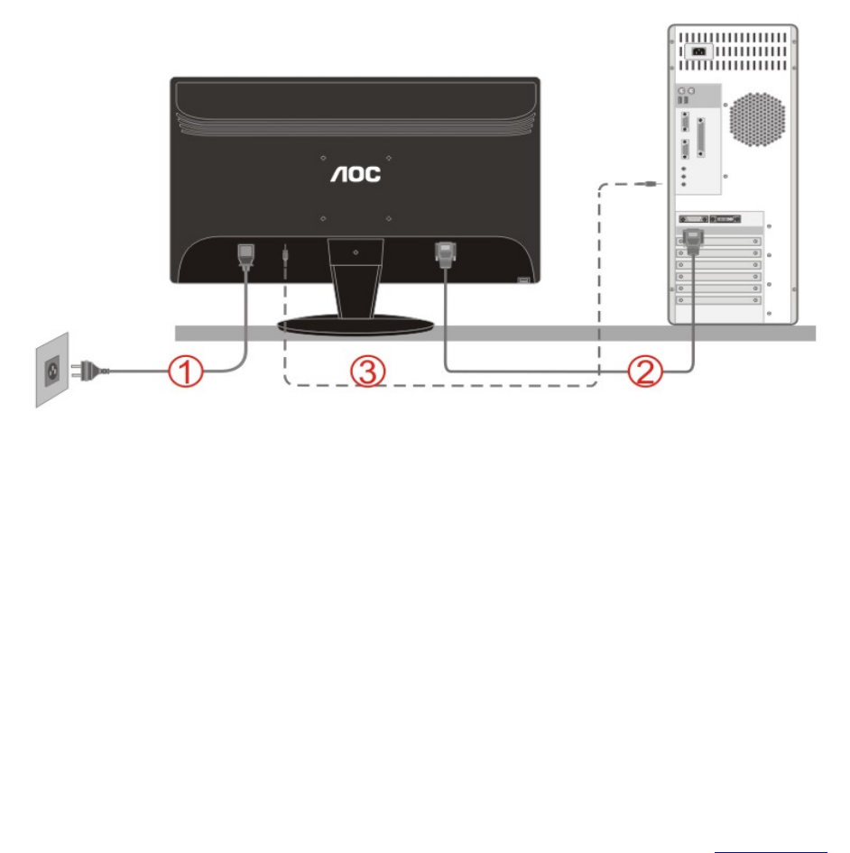 a grounded power outlet and to the monitor.
